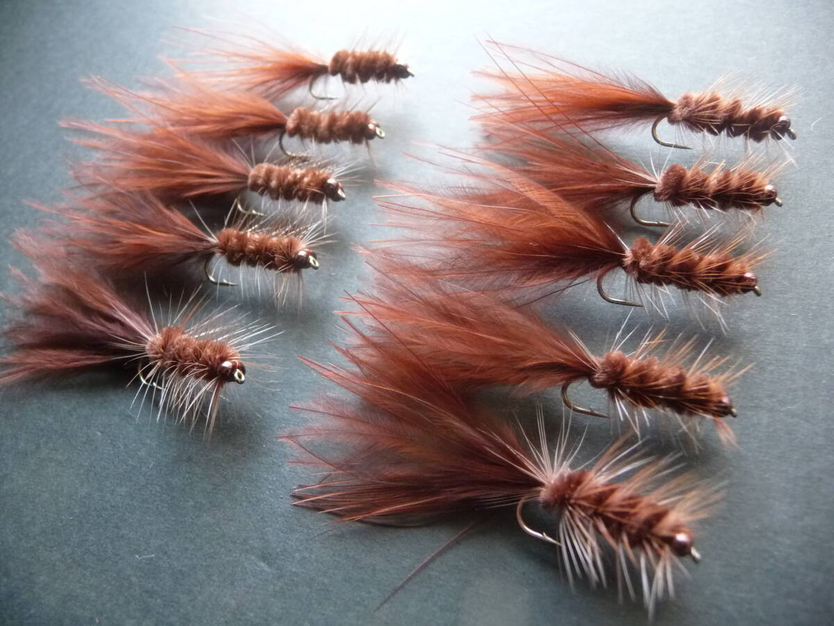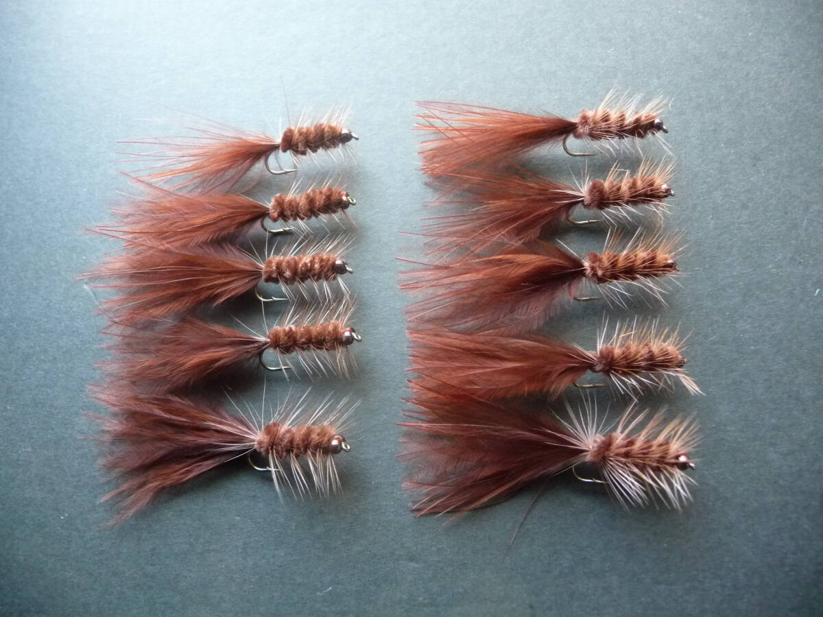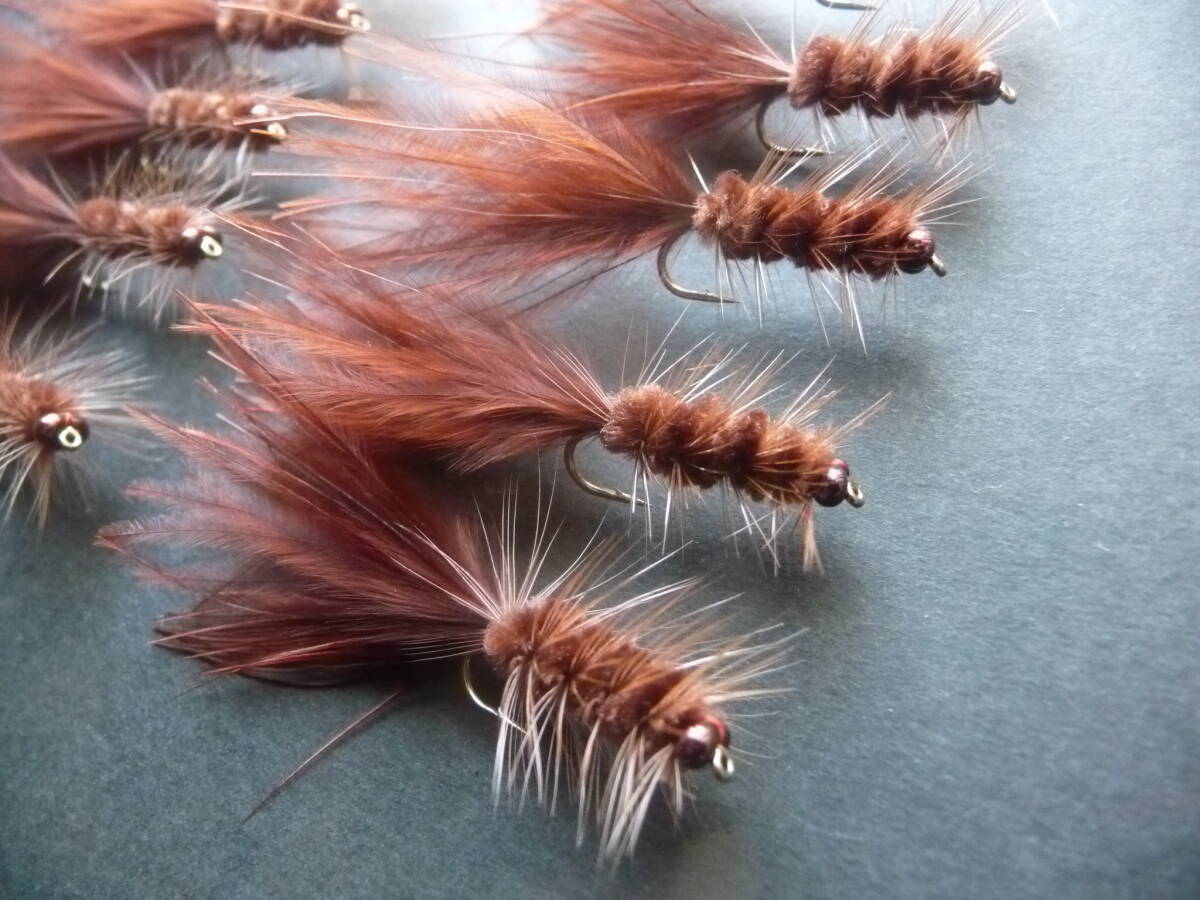 | 湖や管理釣り場では定番のウーリーバガーのボディにモコモコのモールヤーンを使い、ボリューム感を出しています。 ヘッドにはファルファーレビーズを使い、左右に突き出たビーズは魚の目を連想させアピール度は満点です。 | |||||||