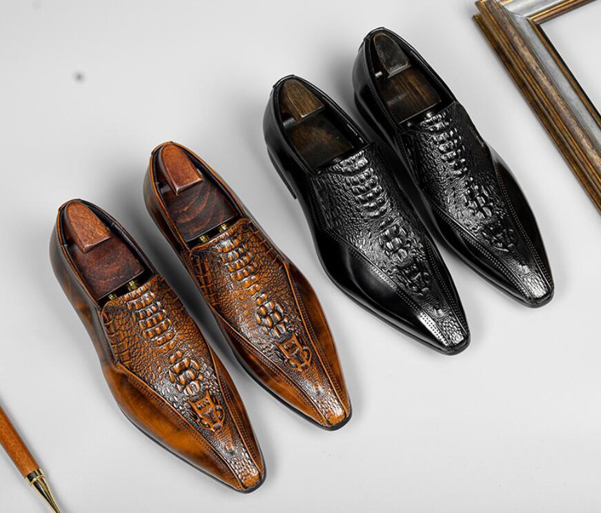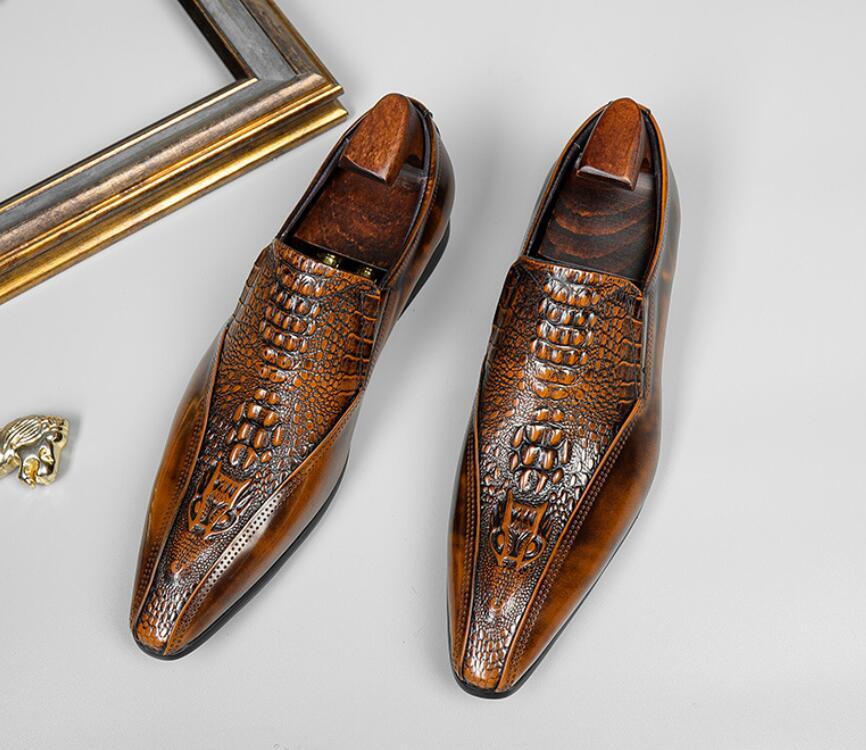 新品未使用本革ビジネスシューズメンズ職人手塗り上げ鰐柄ローファーレザーシューズ スリッポン光沢紳士靴革靴ブラウン24~27.5cmお色選択可