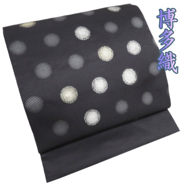 サイズ 373cm x 31cm 素材 正絹 商品ランク B ●お色 黒色 金銀 経済産業大臣指定伝統的工芸品である福岡の博多地区の特産絹織物、【博多織】。 緯に太い糸を強く打ち込むため地合いがしっかりしており、博多帯を締めるとき特有のキュッ、キュッという衣ずれの音を発するのが特徴です。 粋な着物姿を演出するのにぴったりな逸品、是非この機会にお買い求め下さいませ。 使用感の少ない、美しいお品物です。 一部商品は実店舗・他サイトでも並行して販売しておりますので売り切れの際はご了承ください。 その他多数販売中 ho- | ||||||