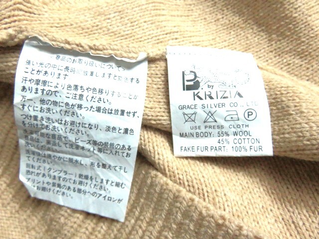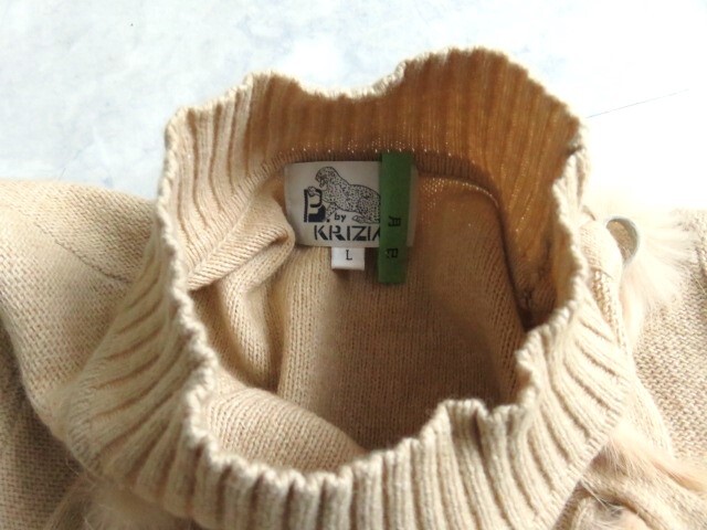 ■上質美品 【B.by KRIZIA】クリツィア 高級 ファー付き セーター 11号 L ベージュ エヴェックス バイ クリツィア w1740