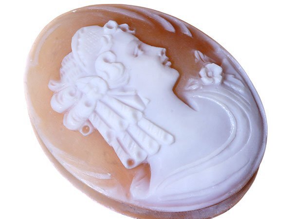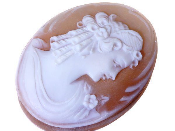 上品な女性と花の彫刻が素敵な高級シェルカメオルースを激安価格で特別大放出致します!