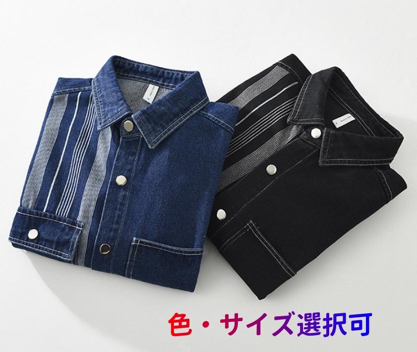 デニムシャツ メンズ 長袖シャツ ウエスタンシャツ シャツジャケット 正規品 ヴィンテージ 超希少 トップス カジュアル コットンシャツ【7585】クロ【M-3XL選択】