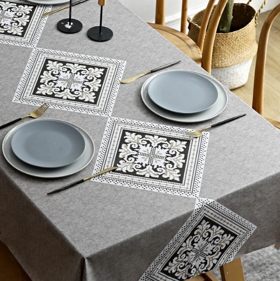 テーブルを傷や汚れから守り、敷くだけで明るい雰囲気になり、食卓が華やかになります。