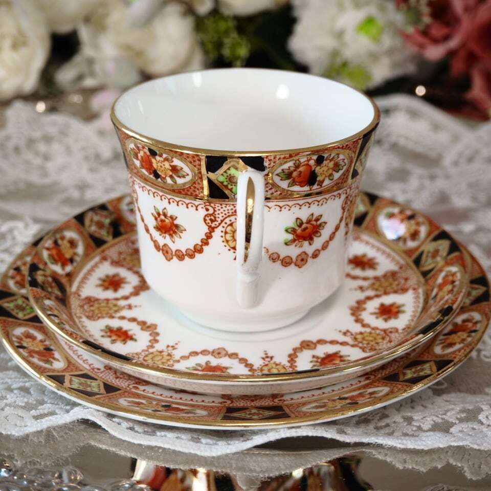 カップの持ちやすいハンドルや、洗練されたラインがテーブルを華やかに彩り、特別なティータイムを演出します。プレートのサイズ感も程よく、デザートや軽食にもぴったり。美しいアンティークの魅力を感じながら、日常のひとときを贅沢に楽しんでいただける一品です。