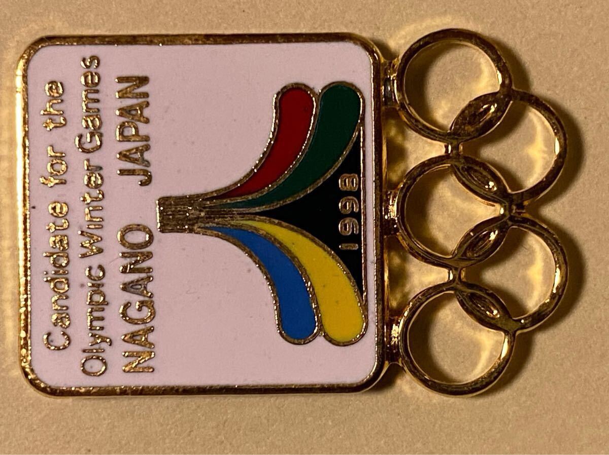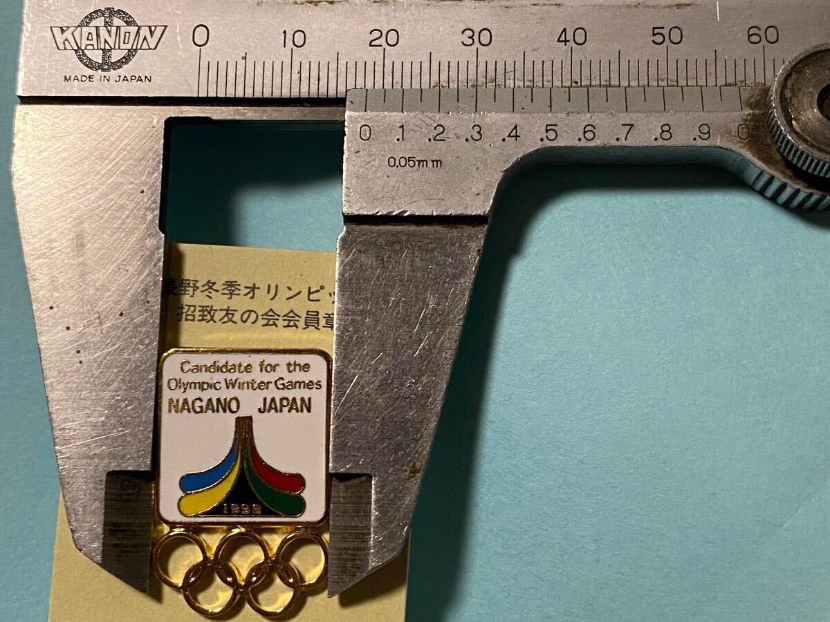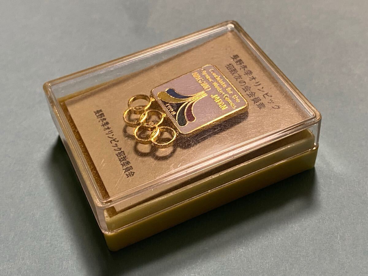 1998年冬季長野オリンピック招致友の会会員章(ピンバッジ)です。大きさは縦約27.5ミリ横約18.5ミリ。自宅での保管品です。専用プラケース入り。