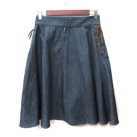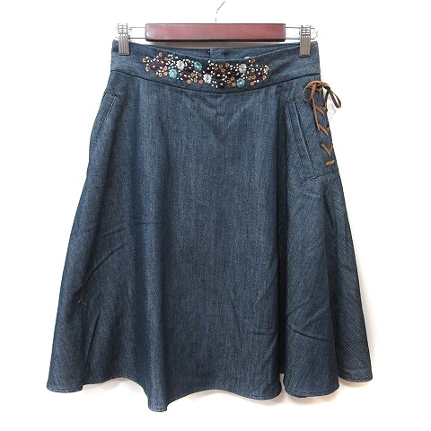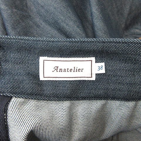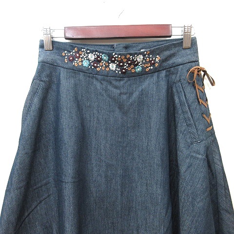 アナトリエ ANATELIER フレアスカート ミモレ ロング デニム 刺繍 38 M 紺 ネイビー /YI レディース