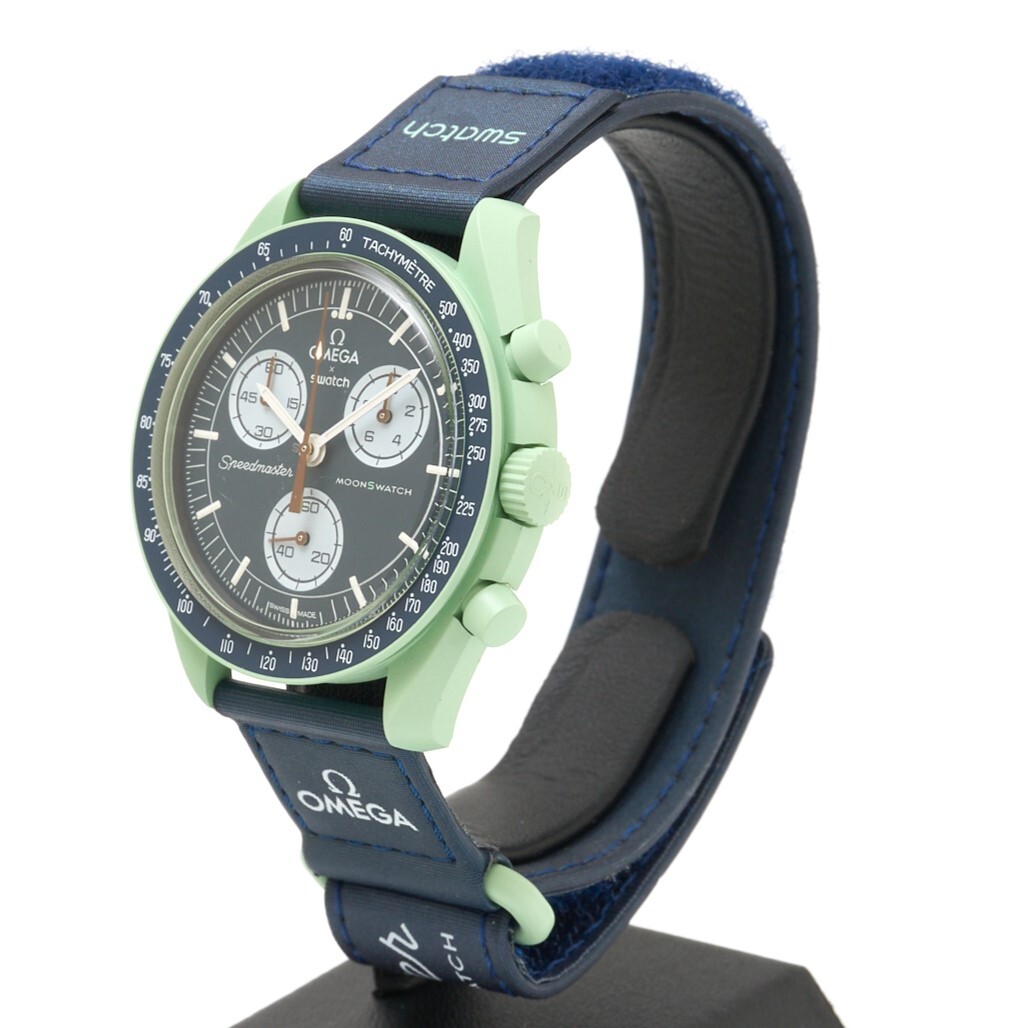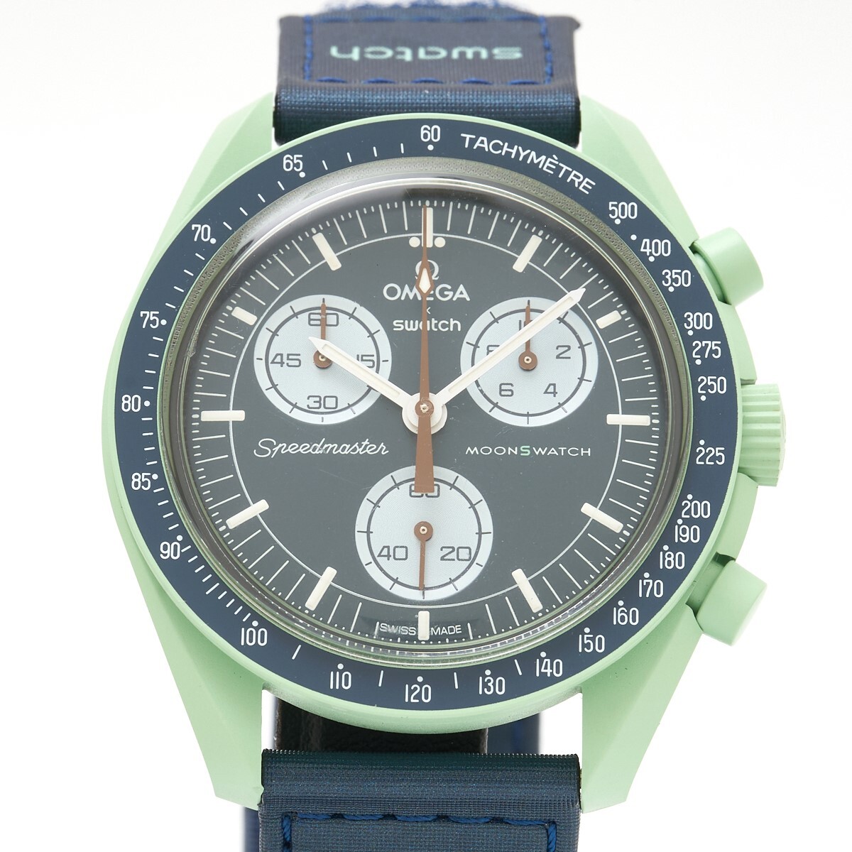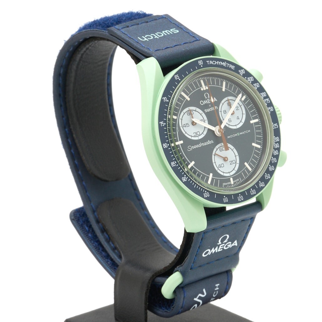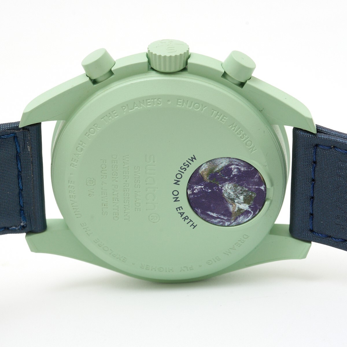 【半年間保証】Swatch×OMEGA スウォッチ×オメガ MISSION ON EARTH SO33G100 バイオセラミック ネイビー文字盤×グリーン クォーツ 腕時計
