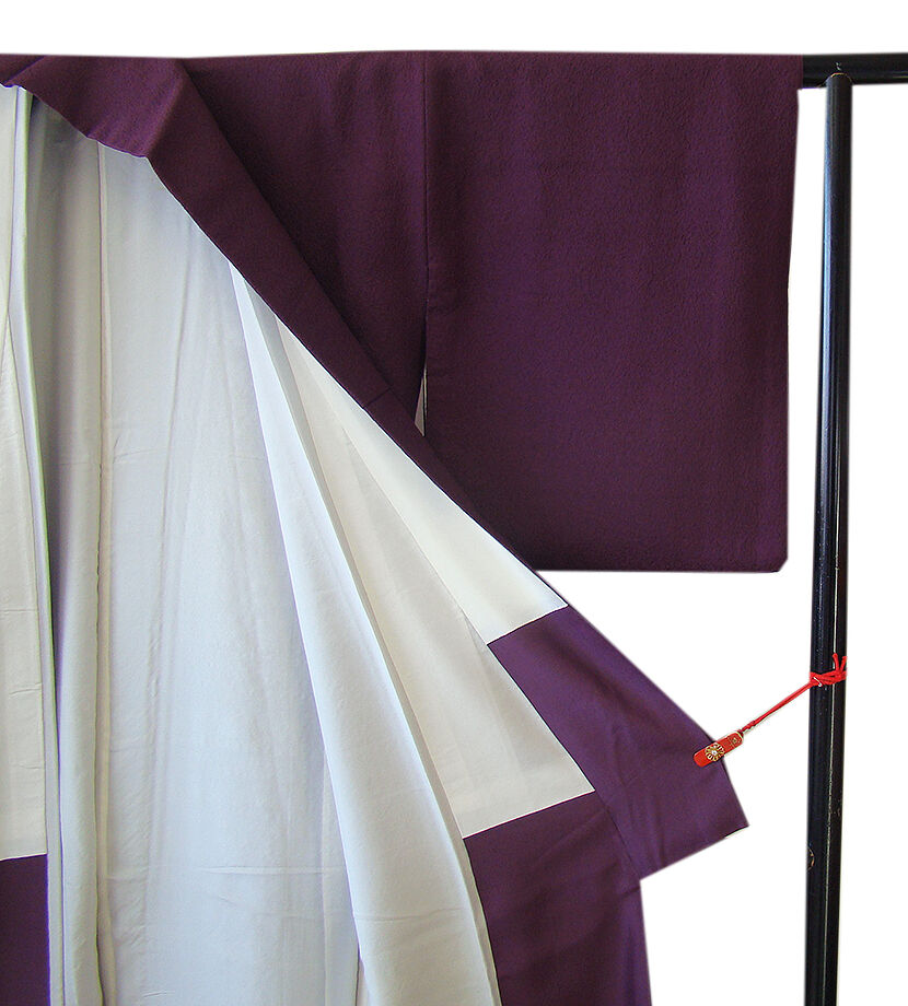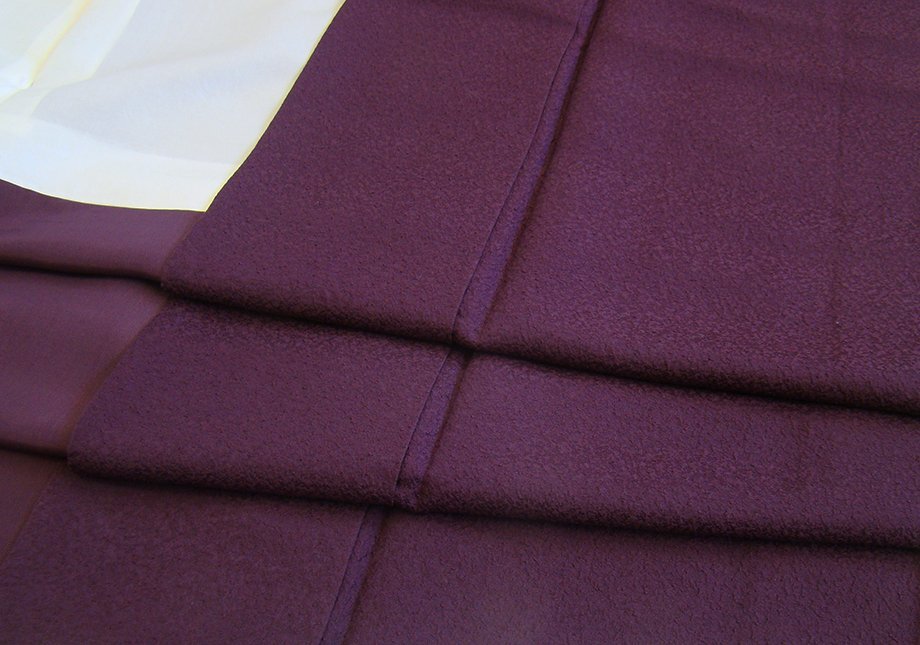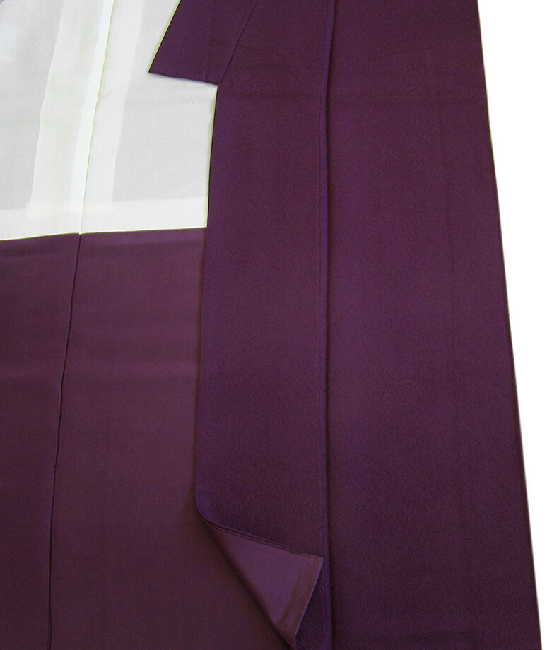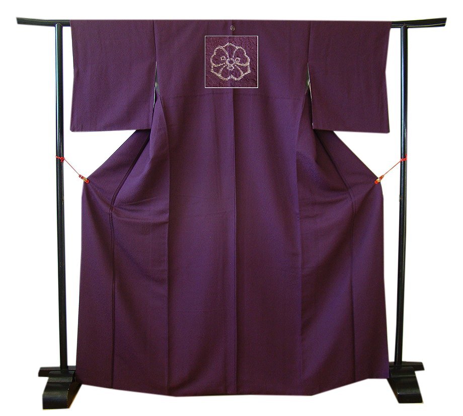 | 商品説明 | こちらのお品は「袷」ですので10月から5月までお召頂ければと思います。 とてもしなやかで柔らかな手触りの着心地良い重めのちりめん地の変り織の生地、 滅紫色地の無地着尺、 八掛は葡萄鼠色(正絹)、背には「剣片喰」の刺繍紋1ヶ、幅広い年代の方にお召し頂けます。 |