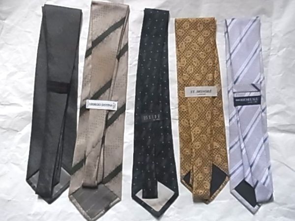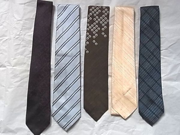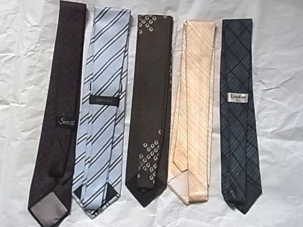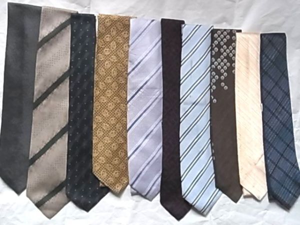 ユーズド品です。まとめてネクタイ10本セットです。素材はシルク(絹)やポリエステル、その他で不明な物もあるかもしれません。色や柄等は画像で確認して下さい。キズや汚れや変色や擦れや糸引けやループが取れかかっていたり等々不具合があります。状態は良くありません。自己紹介記載の通り猫を飼っている喫煙者です。猫の毛やタバコの臭いの付着の可能性がありますので神経質な方や上記が許せない方は入札をご遠慮下さい。