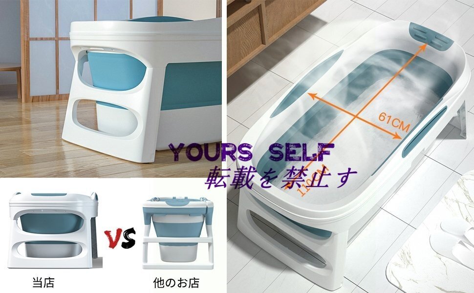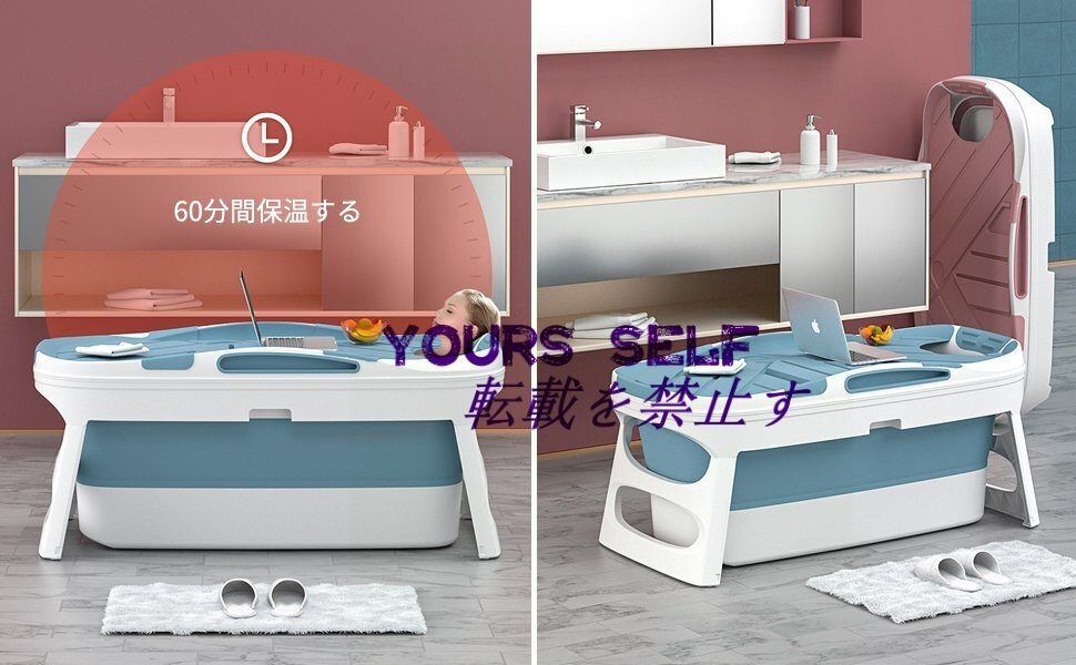 ポータブルバスタブ 折りたたみ浴槽 折り畳み式 バスタブ 持運び便利 風呂 バケッツ 家庭用大人お風呂 浸漬式 SPA ブルー フタあり