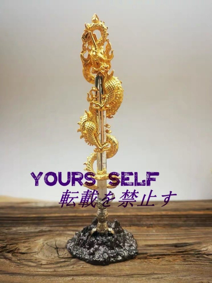 極上品 倶利伽羅龍王 不動明王 倶利伽羅竜剣 倶利伽羅剣 三鈷剣 密教法具 寺院仏具 台座付き 銅製 高さ58cm