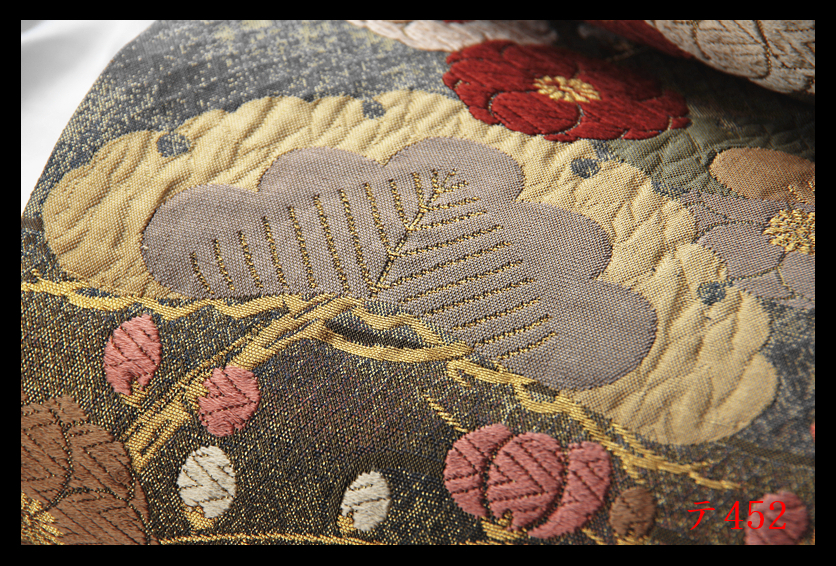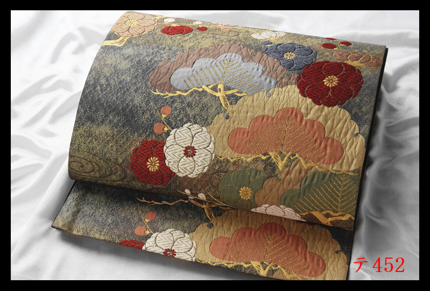蔵【テ452】厳選逸品 ふくれ織 松梅紋 高雅な一条 正絹純金糸六通高級美術袋帯 新品同様 ◇検簪着物名古屋帯和装小物帯締め