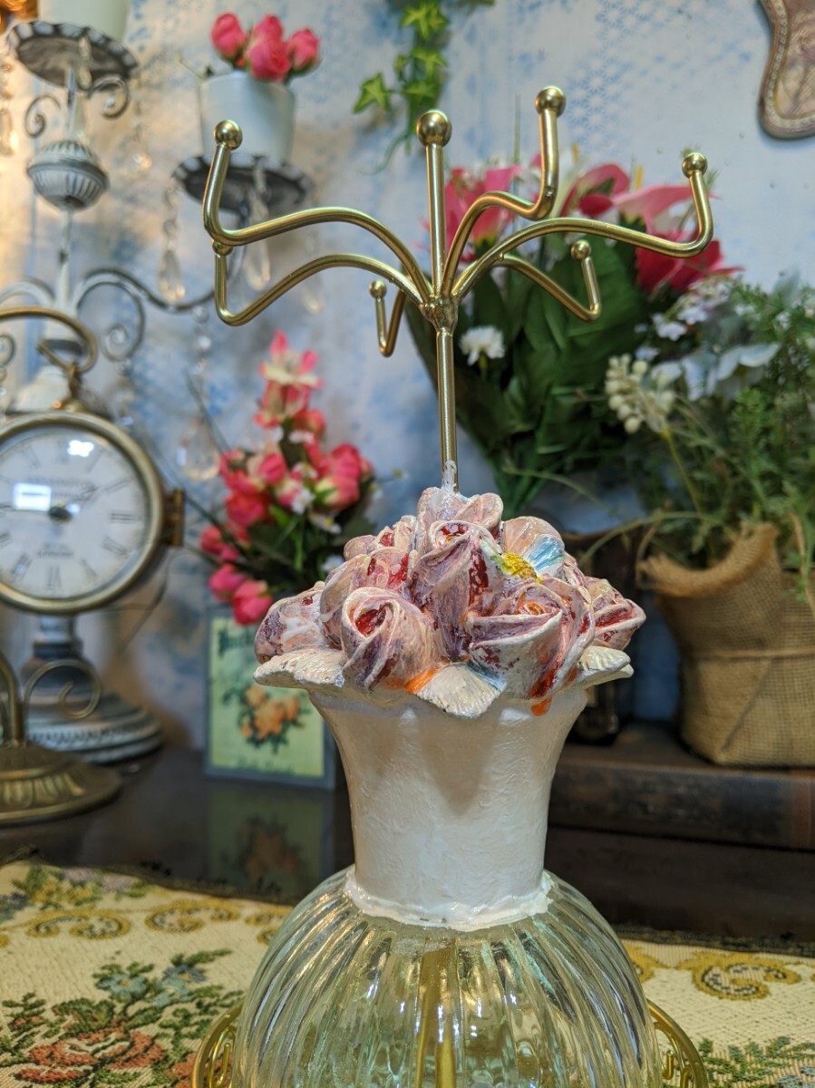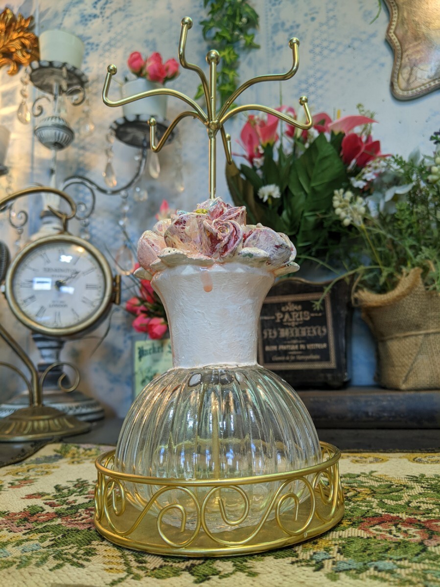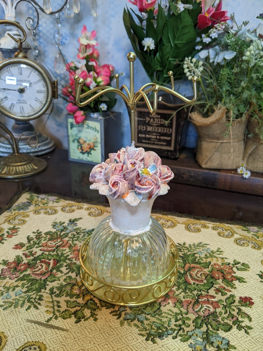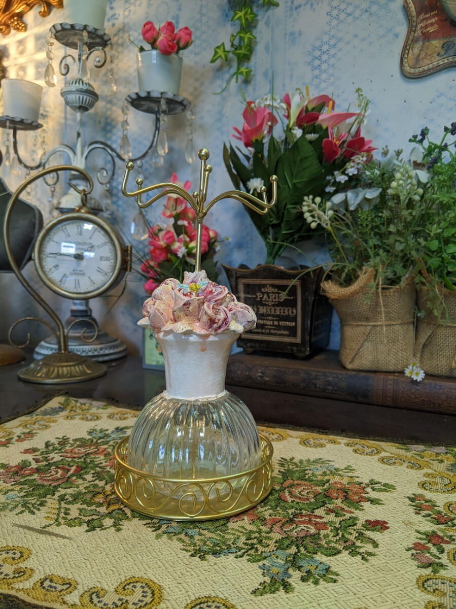 ※試作品の放出販売に伴い、市販品とは異なるデザインにし、鉢植え薔薇はアンティークペイントにて色味を着けし、高さを持たせてデザインした物となります。