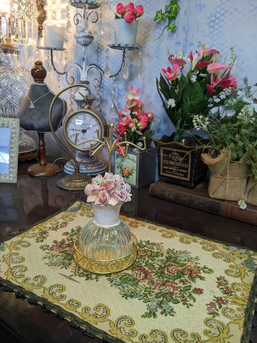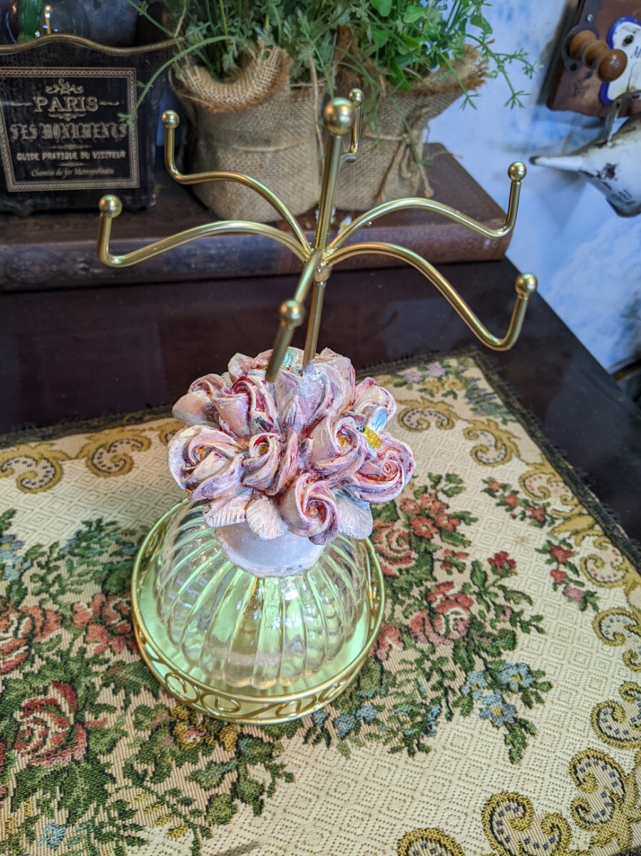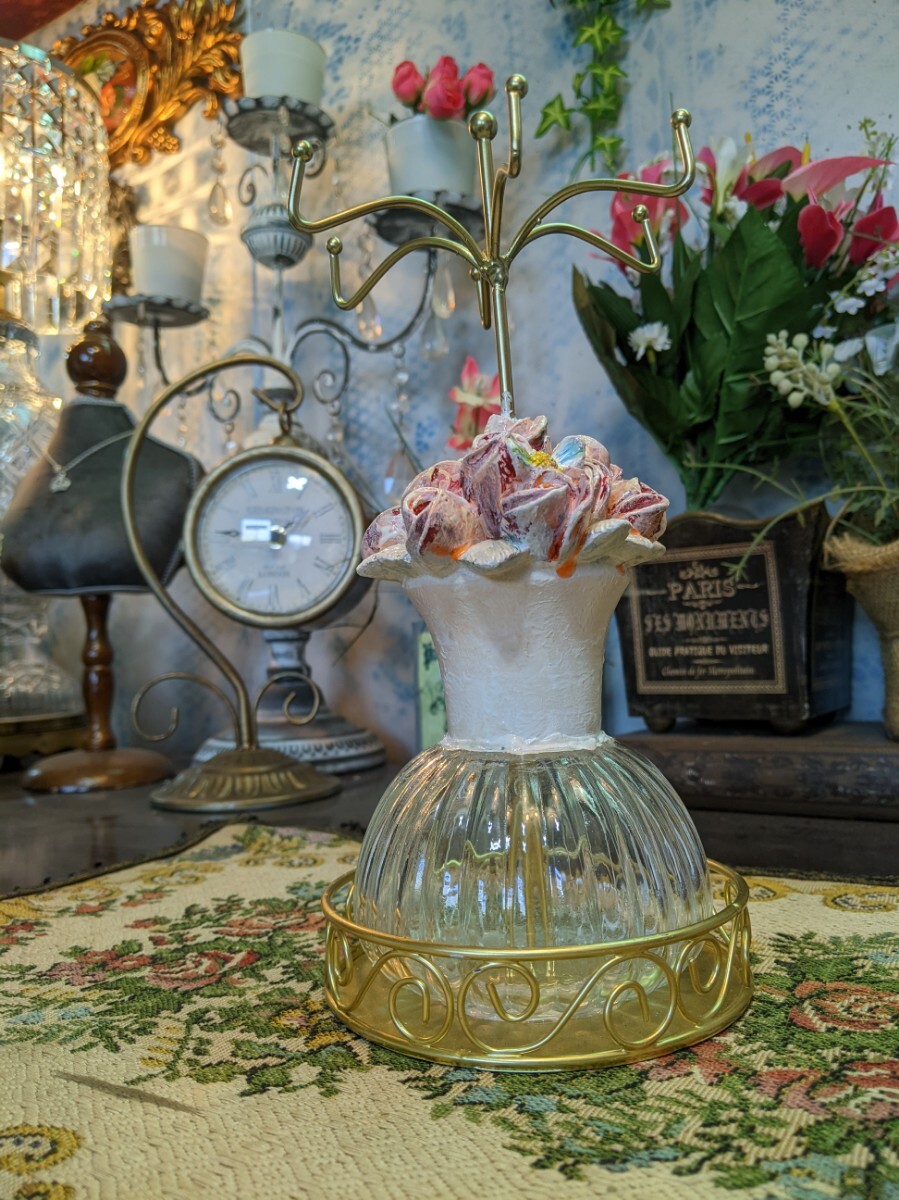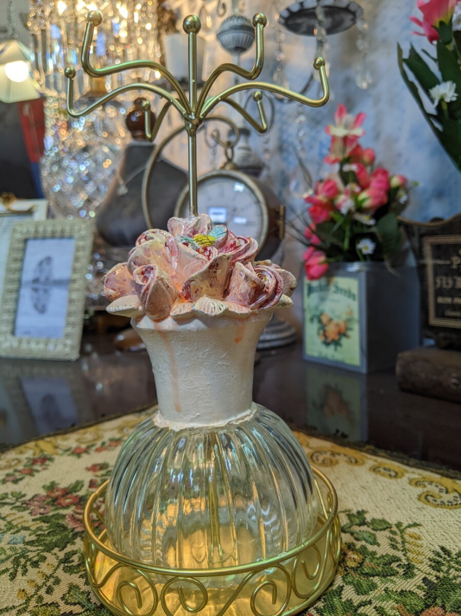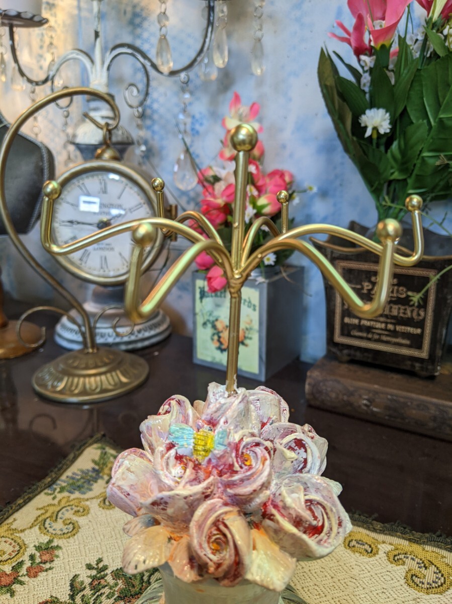 ※試作品の放出販売に伴い、市販品とは異なるデザインにし、鉢植え薔薇はアンティークペイントにて色味を着けし、高さを持たせてデザインした物となります。