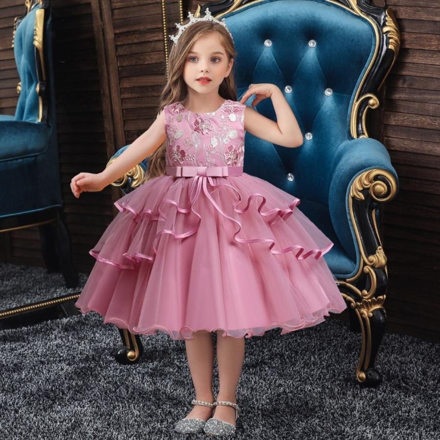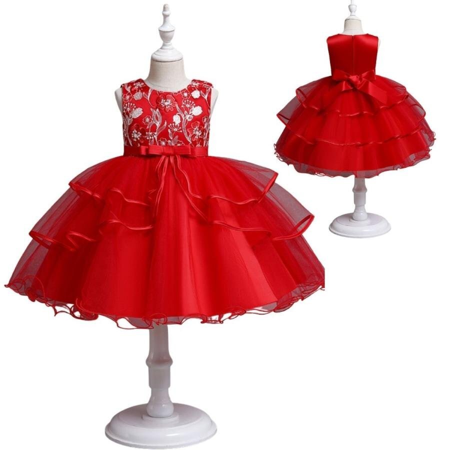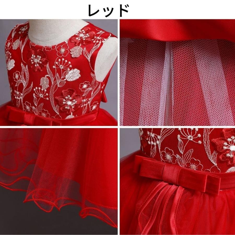 子供ドレス 発表会ドレス ワンピース ドレス 子ども 結婚式 水色 発表会 ドレス キッズ 女の子 ジュニアドレス レッド140cm