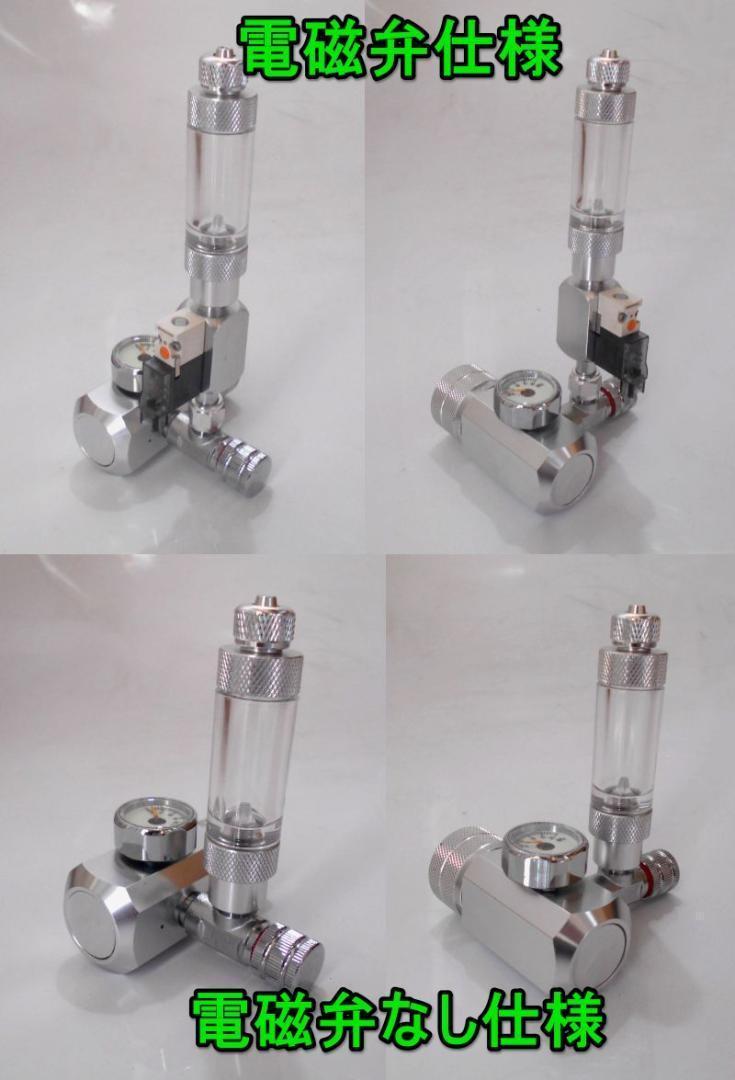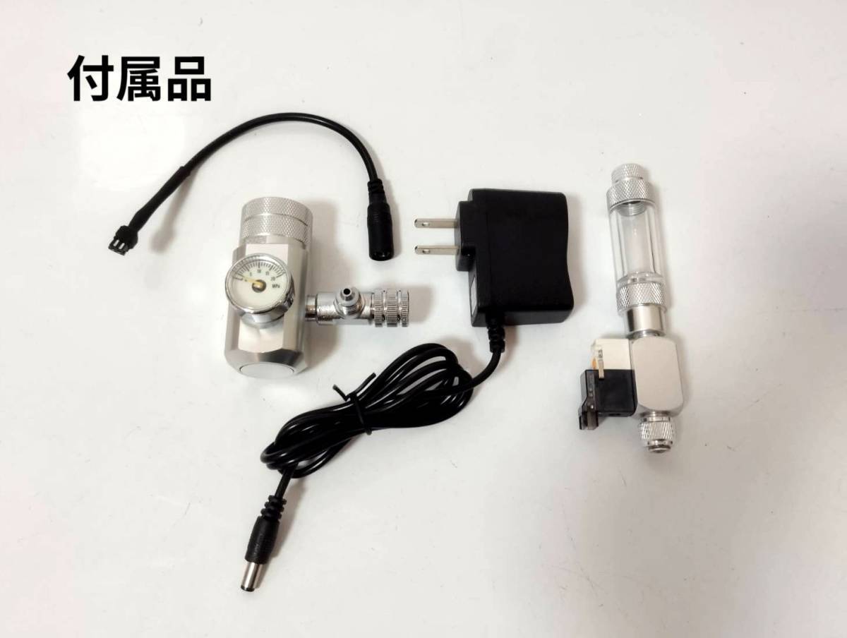 1台限定でお安く販売させていただいております。 在庫がなくなり次第終了になります。予めご了承ください。 全国送料無料 FREE WIND社 新型CO2レギュレーター(電磁弁1体型)+バブルカウンター 各機器が一体型になり、さらに安定してCO2添加を行えるようになりました。 排出バルブ部分が改良され、スピコン同等の細かな排出設定が可能です。 (製品保証につきまして) 購入日より、3か月のメーカー製品保証付きです。 到着後の1週間以内の初期不良につきましては、説明書のメールアドレスまでご連絡をいただけましたら、往復分の送料を当方負担にて対応させていただきます。 それ以降の保証対応の際はお客様に送料負担をお願しております。 落札後、使用方法でわからないことなどございましたら、メールサポートもいたしますので、はじめての方も安心してご使用いただけます。 (付属品) レギュレーター本体 1個 低発熱電磁弁 1個 バブルカウンター (逆流防止弁内蔵式) 1個 チューブ 1m 取り扱い説明書 (画像のミドボンは付属されておりませんので落札者様でご用意お願いいたします。) (レギュレーター詳細) 国内のすべてのメーカーのミドボンに対応しております。 カートリッジ式の小型ボンベ(5/8X18UNF)サイズには対応しておりせん。 こちらの商品、手締めだけでもエアー(CO2)が漏れずに確実締めることができる、非常に密封性の高い商品になっております。 付属のバブルカウンターは電磁弁用になります。 適合チューブサイズ 外径6mm内径4mmになります。 (電磁弁詳細) 100v 50Hz/60Hz 対応 消費電力:約0.4w 発熱量が少ない商品ですので、電磁弁の発熱が気になる方にも安心してお使いいただけます。 (商品につきまして) 使用(動作)に問題はありませんがすりキズ、多少の汚れなどある場合がございます。予めご了承ください。 | ||