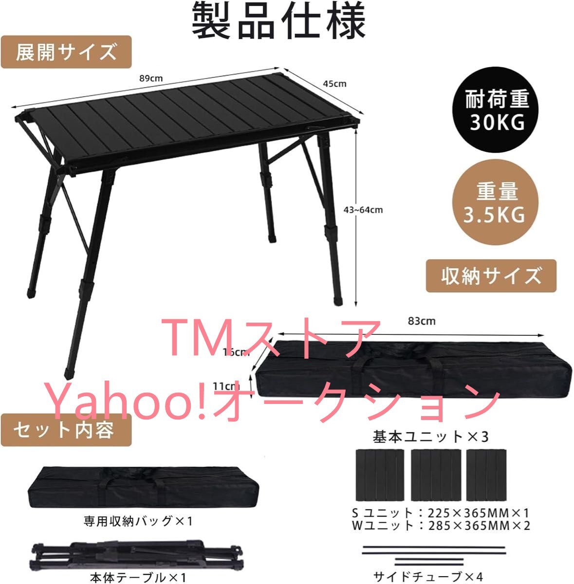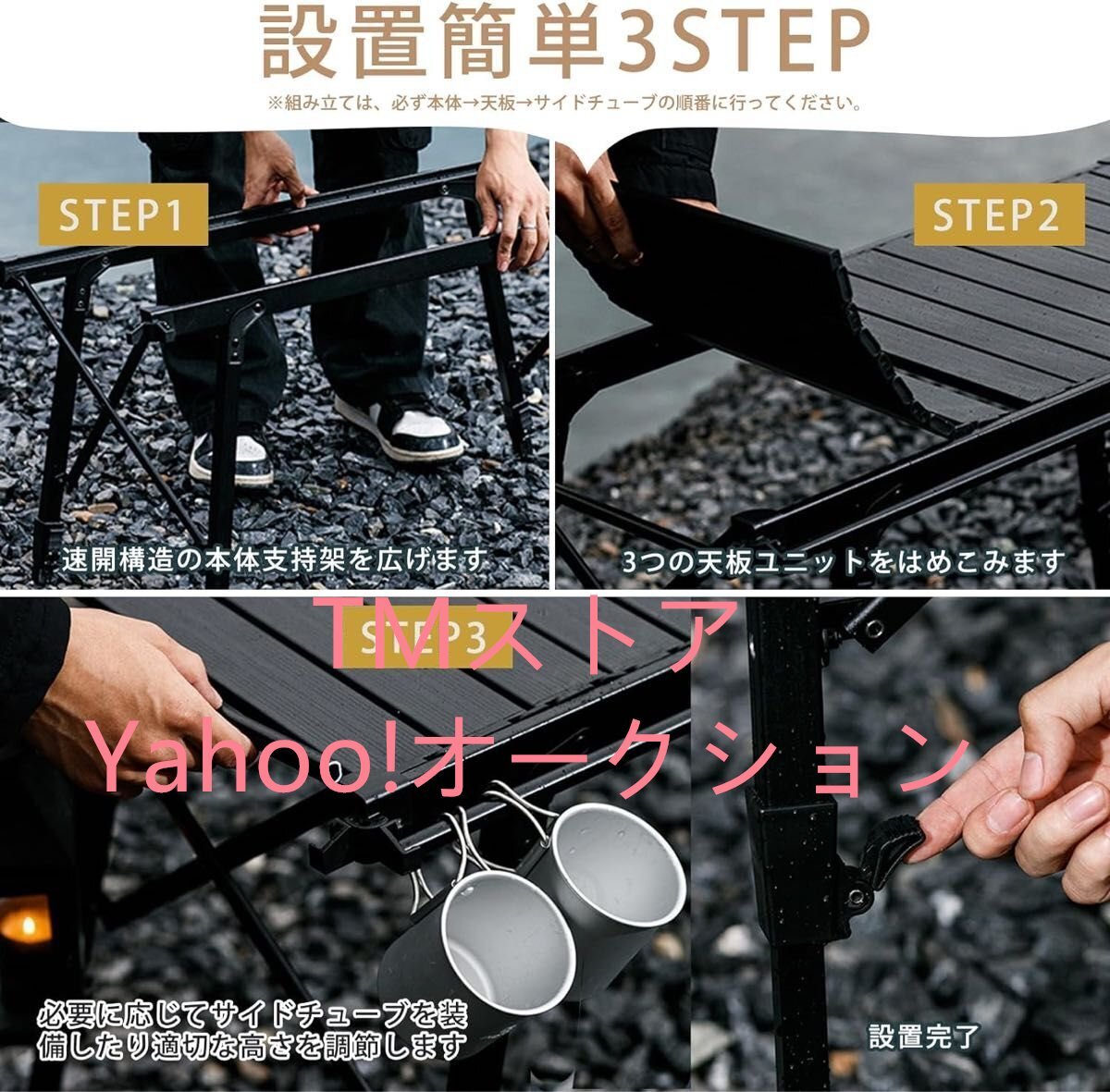 新品推薦★ アウトドアテーブル 折り畳み 組立不要 高さ無段階調節可 吊り下げ用サイドレール付 アルミ合金 軽量