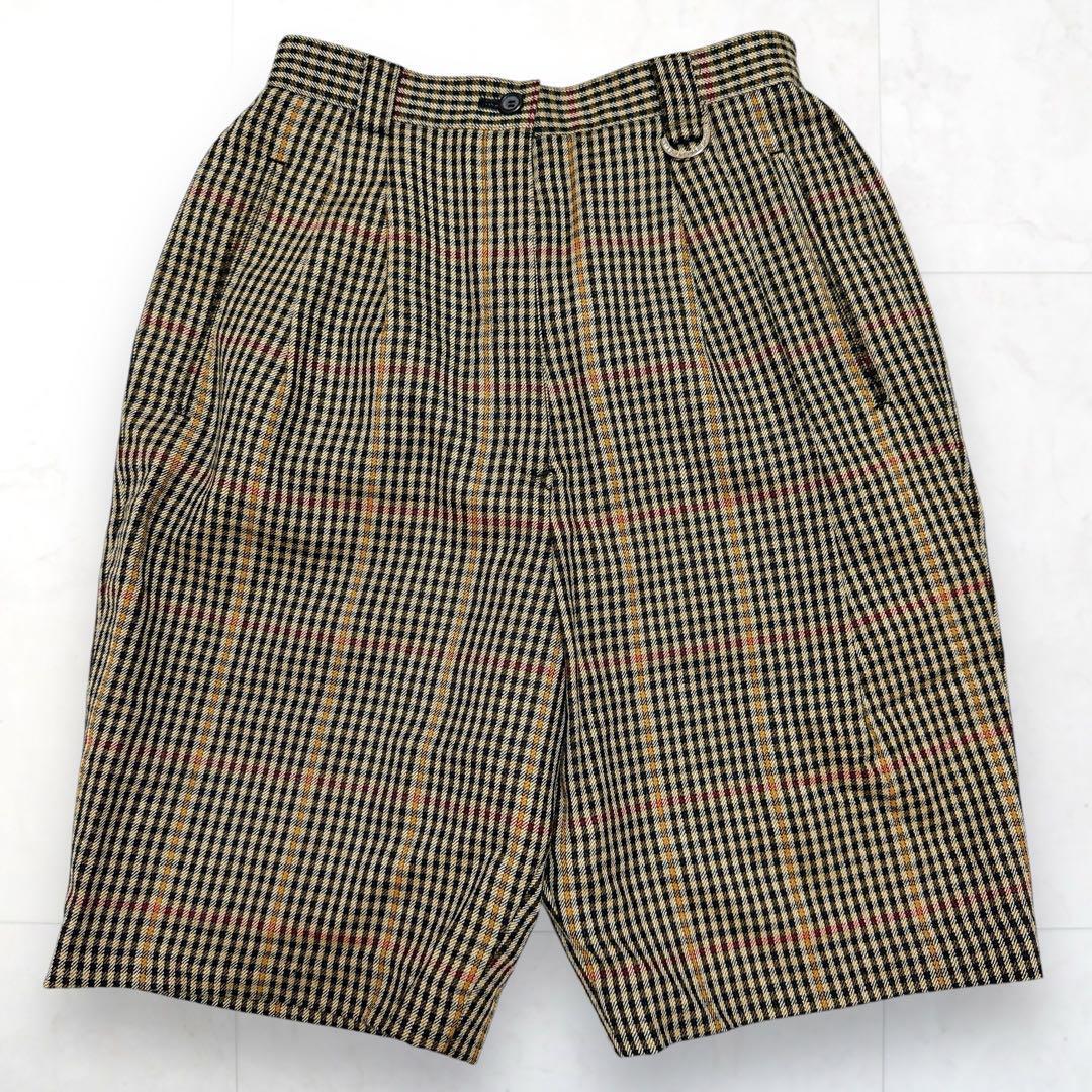 ウール ショートパンツ キュロットパンツ ロゴ金具 チェック柄 ツータック ゴルフ