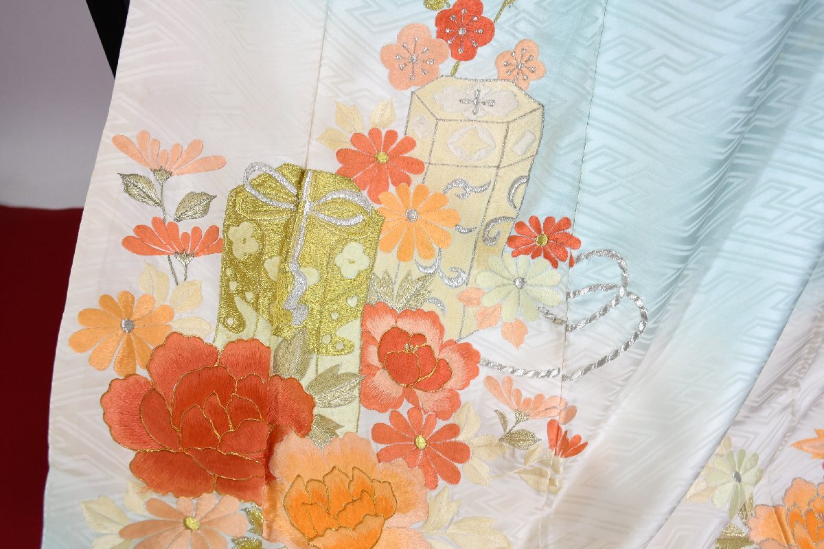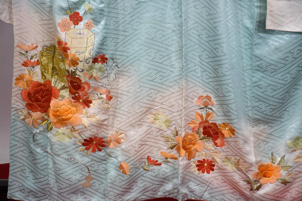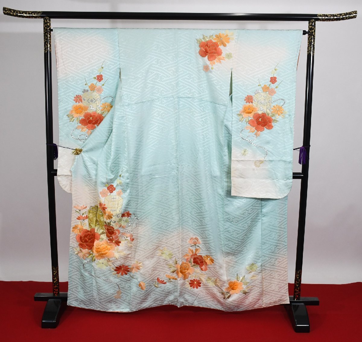 | サイズ | ▼身丈 (背中から) 156cm ▼裄丈 67cm ▼袖丈 91cm ▼後巾 30cm ▼前巾 23cm |