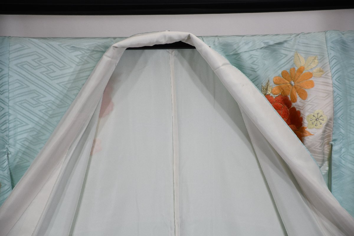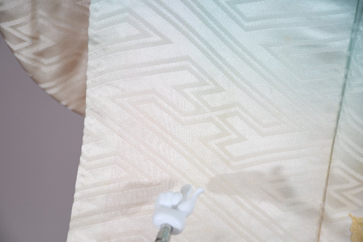 | コメント | 衽、後ろ、袖、衿、前側、裏地等にシミ汚れがあります。新品ではありませんので、中古品という扱いです。少したたみジワがある場合がございます。ご了承の上、ご入札をよろしくお願いいたします。 |