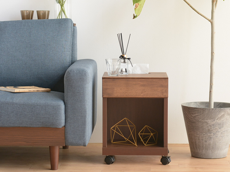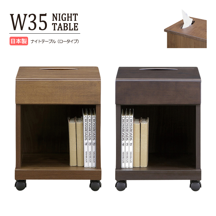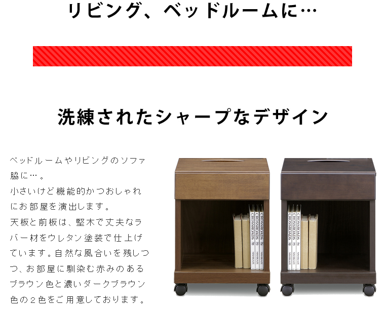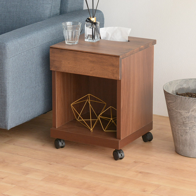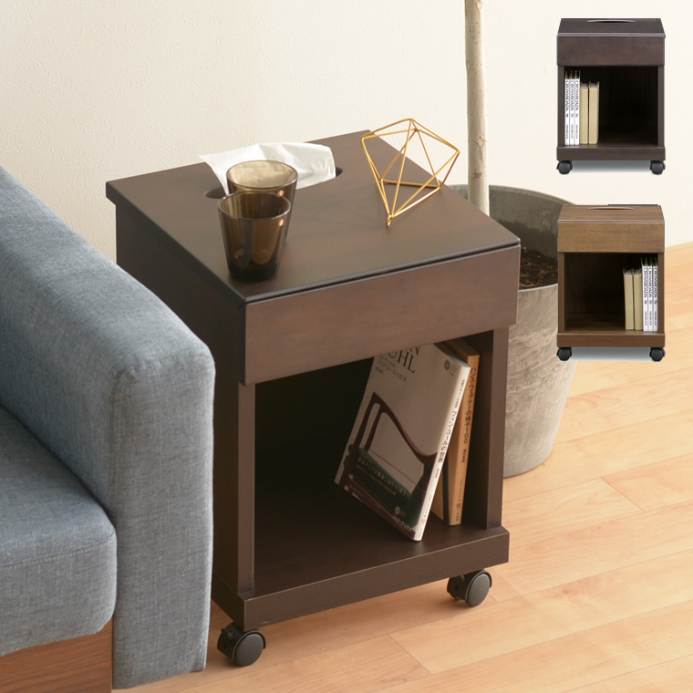 ナイトテーブル サイドテーブル ベッドサイドテーブル ティッシュボックス キャスター付き 木製 天然木 ダーク
