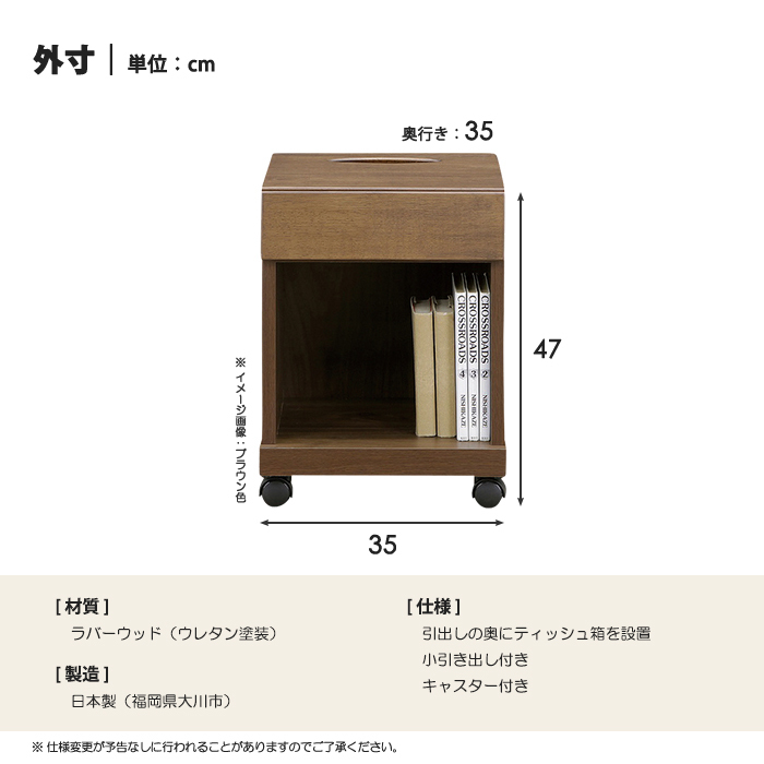 仕  様引出しの奥にティッシュ箱を設置・使用可能