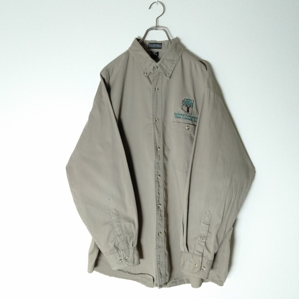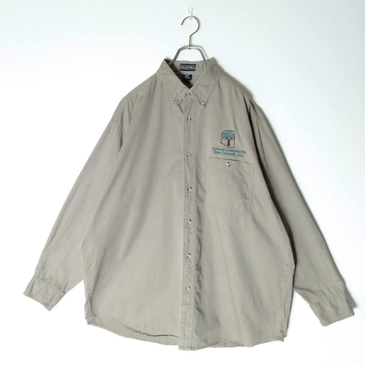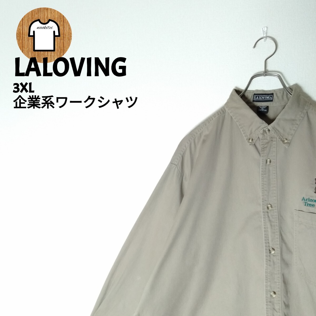 LALOVING ワークシャツ 3XL 企業系 刺繍ロゴ ビッグサイズ A991 海外古着 メンズ オーバーサイズ 大きいサイズ 1ポケット 太アーム