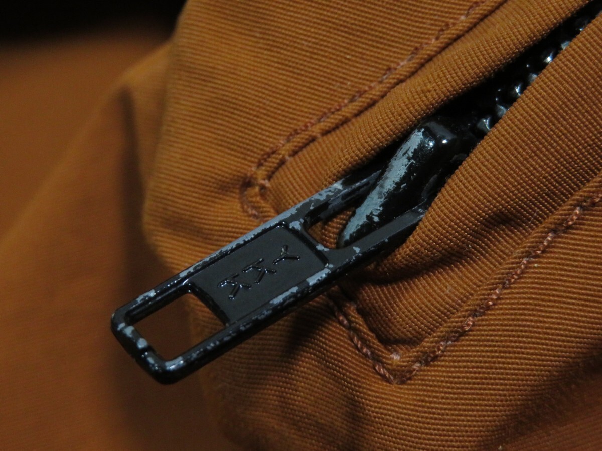 ・素材特有のシワ感、ジッパー部分の塗料落ち、タグの劣化と印字薄れ