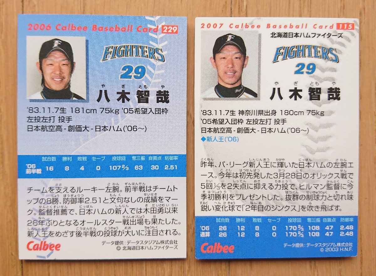【カード・カルビー】八木智哉 2006年229 / 2007年115 計2枚セット 北海道日本ハムファイターズ カルビープロ野球チップス