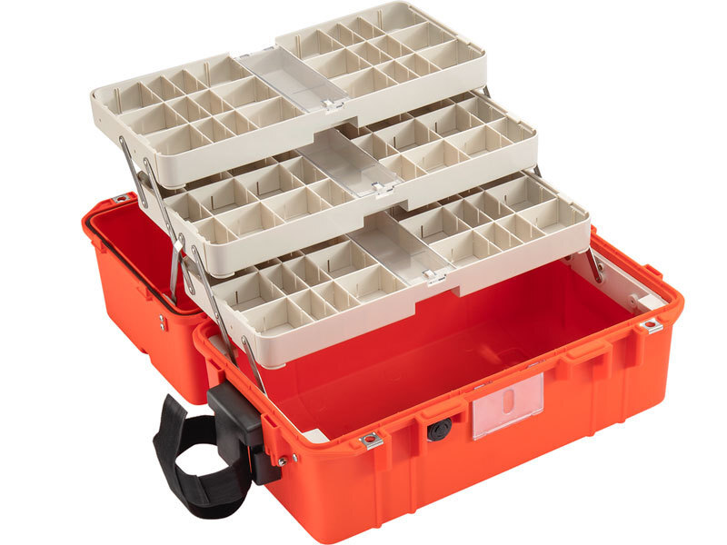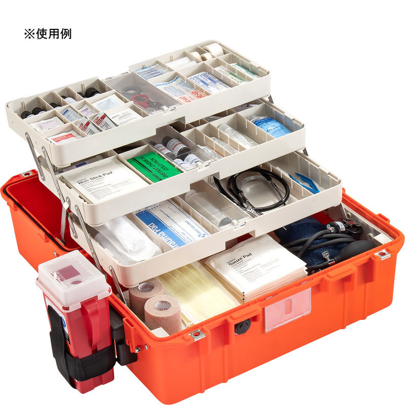 ● 各トレーには仕切り板が付いているので、自由自在に収納をカスタマイズできます。 ● 耐衝撃性があり、圧力にも強いプレスアンドプルラッチを採用。(参照:写真3枚目) ● 取り外し可能で掃除しやすい衛生的なトレー(参照:写真5枚目) ● 鍵の取り付け部にはステンレス製補強板が付いています。 ● 注意:医療用品は商品に含まれていません。 ● サイズ: 内寸 (L×W×D) : 47.3 x 25.4 x 27.8 cm 外寸 (L×W×D) : 52.9 x 32.1 x 32.4 cm ● 重量: 6.94 Kg