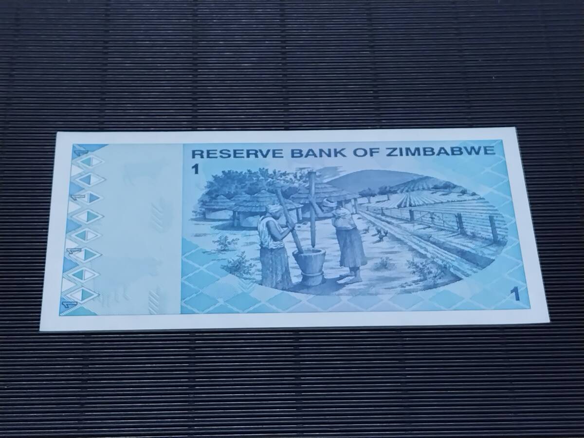 ジンバブエ 1 Dollar札(旧1兆ドル)(4次の01) コレクション向きのピン札 2009年 未使用~甘い未使用 #AA1107179