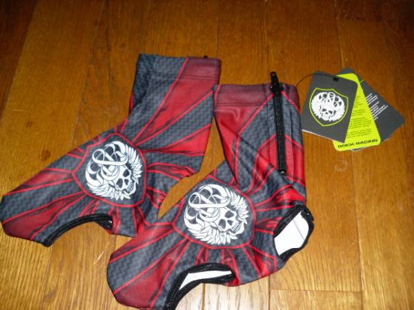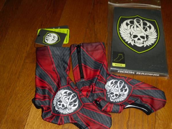 【特徴】足首部分にROCKRACINGロゴの入ったシリコン加工が施してあり、ずれ下がり防止。クリート穴あり。裏部にジッパーあり。カラー BLACK/ROAD