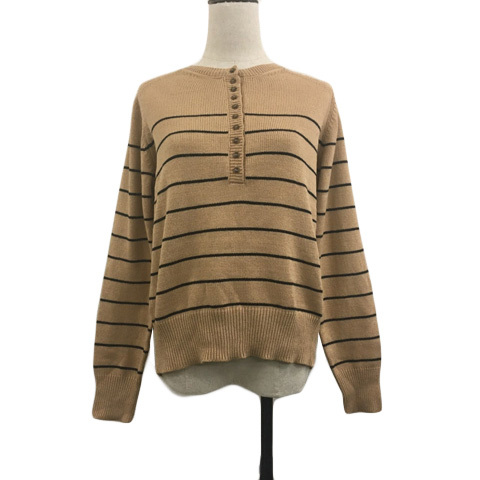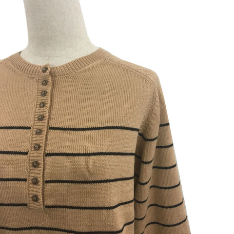 ロペピクニック ROPE Picnic セーター ニット プルオーバー ヘンリーネック ボーダー 長袖 40 ベージュ 黒 ブラック レディース