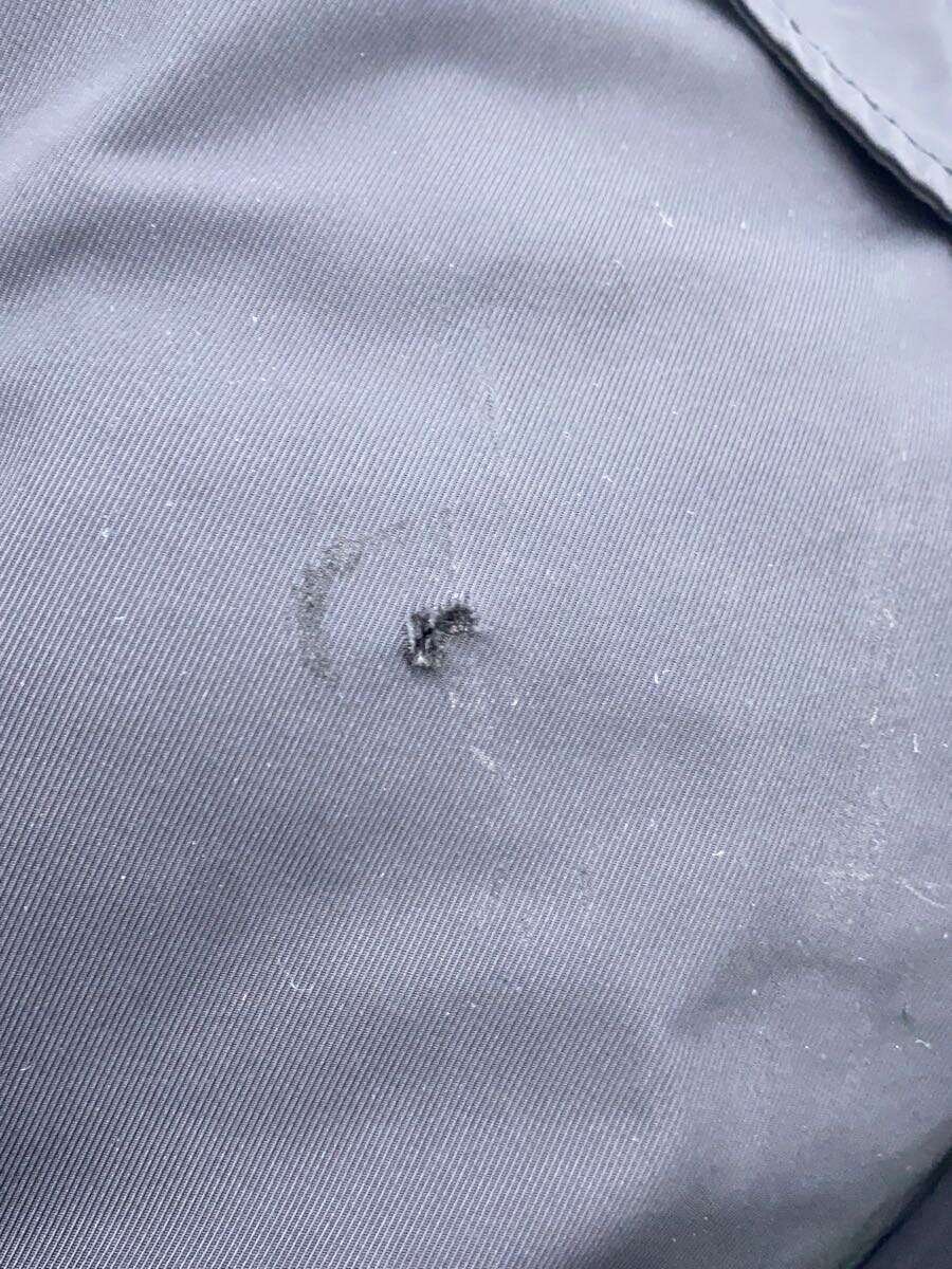 袖に汚れがございます。また前左ポケットに破れがございます。 |