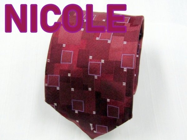【ニコル】 E 126 ニコル NICOLE ネクタイ 紫系 スクエアパターン ジャガード