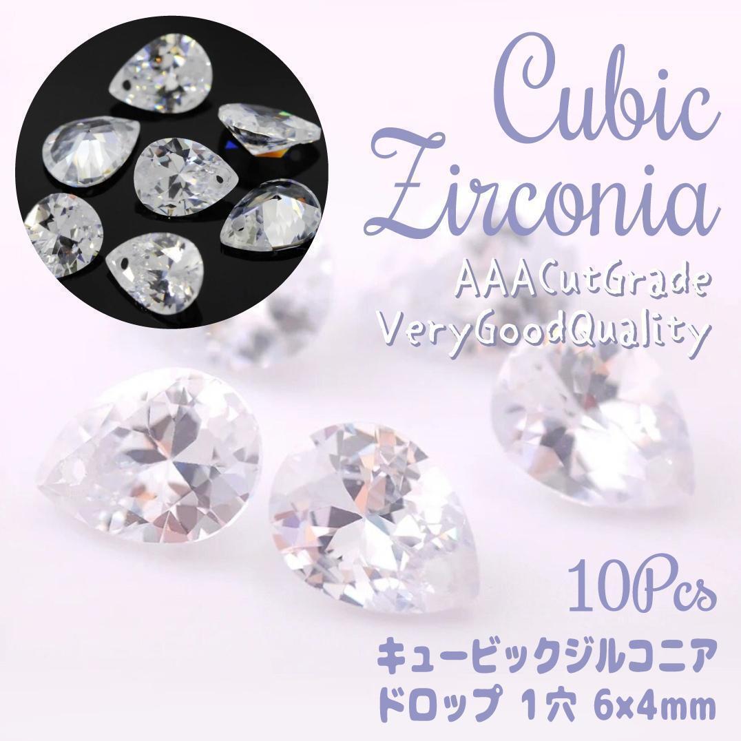 高品質な AAA カットグレード の キュービックジルコニア 6×4mmのティア ドロップ 1穴です。