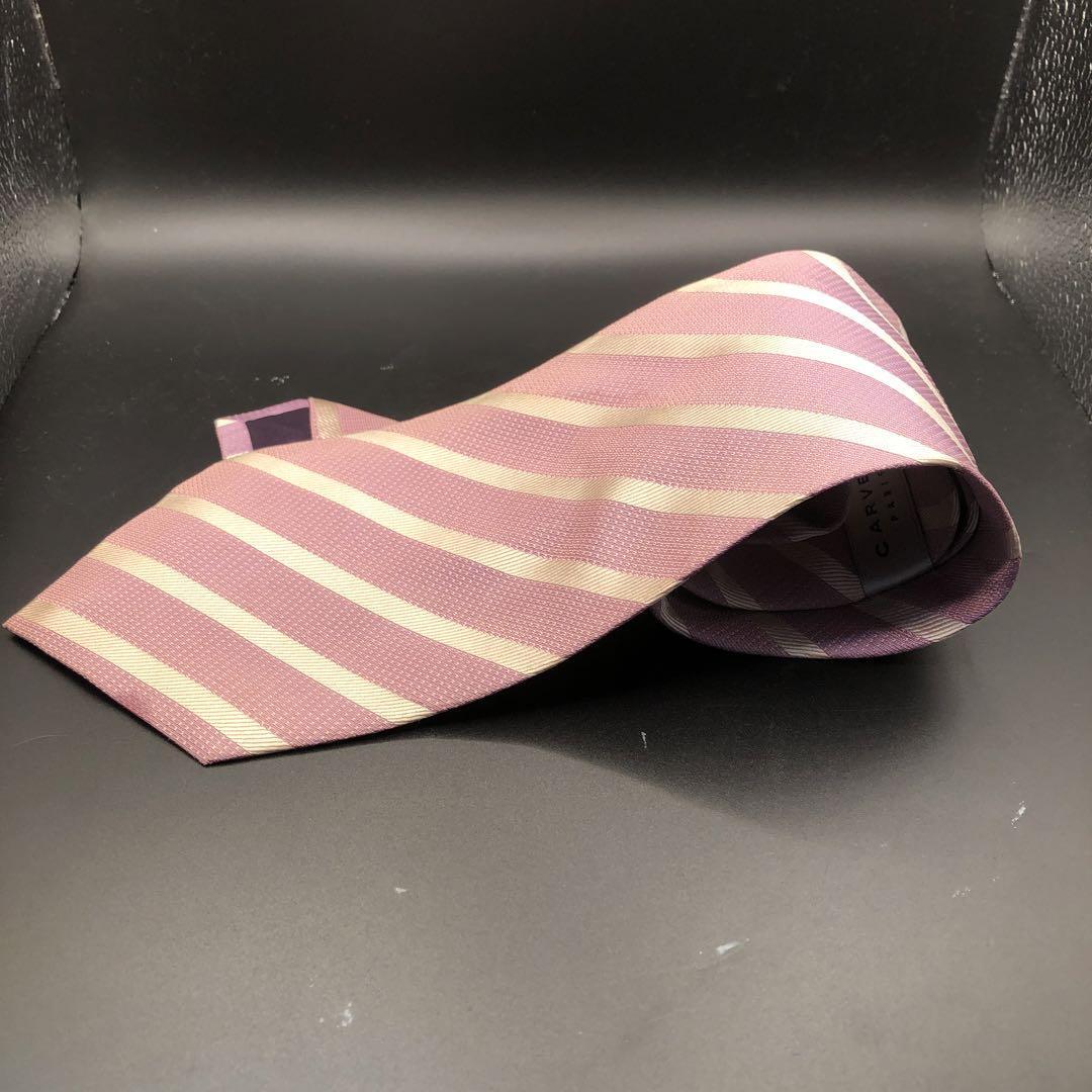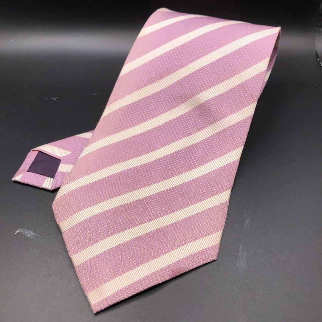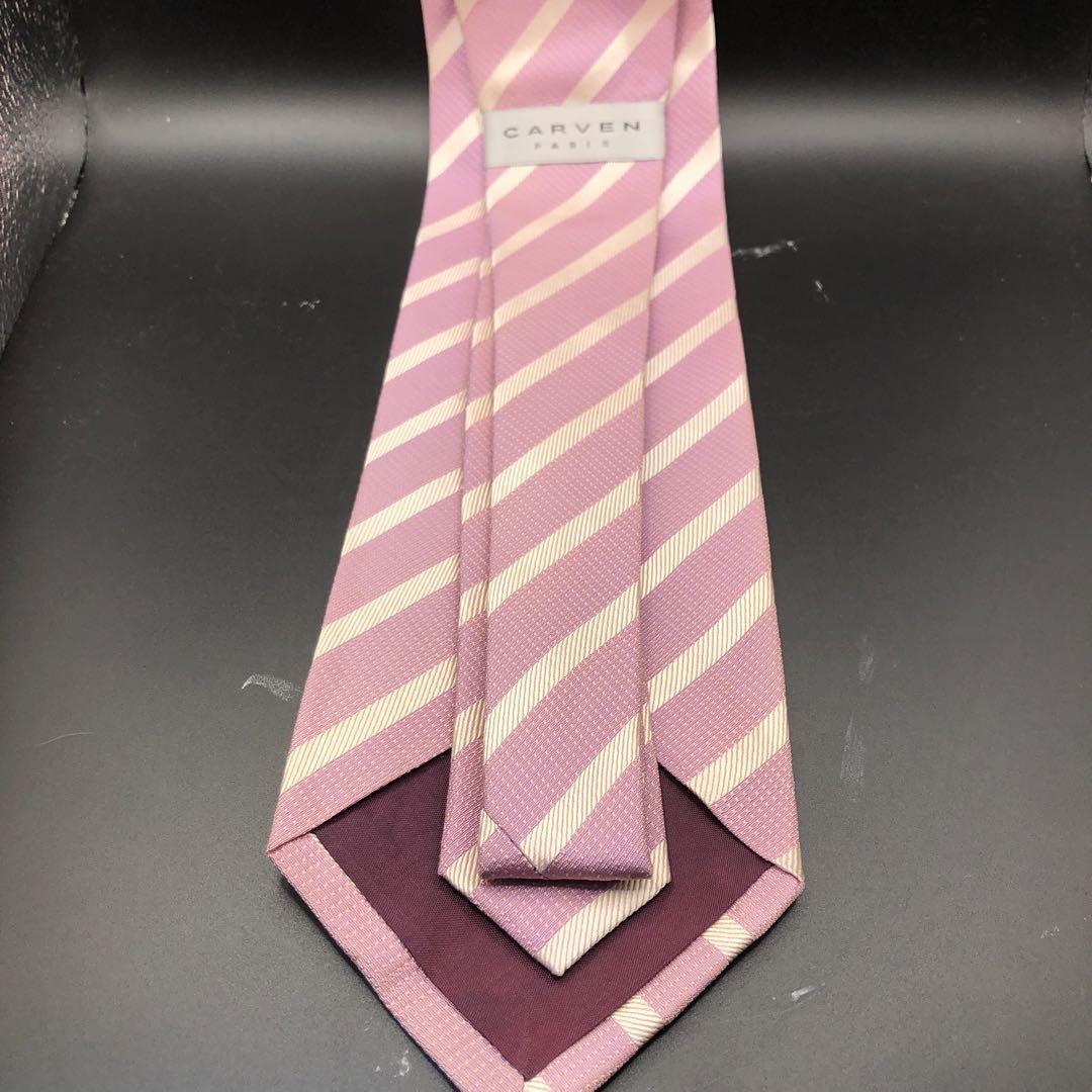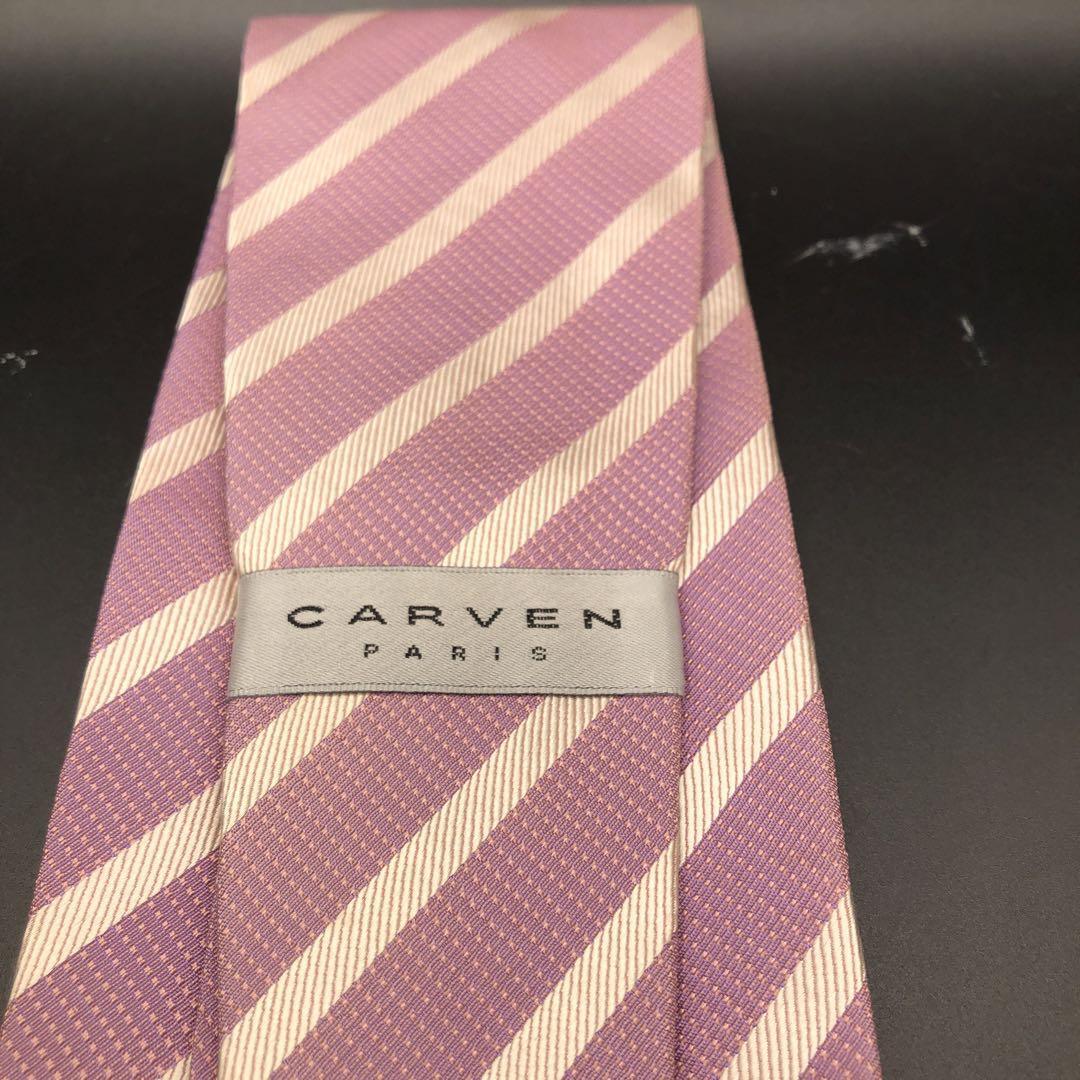 紫と白のストライプが特徴のCARVEN製ネクタイ。