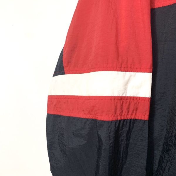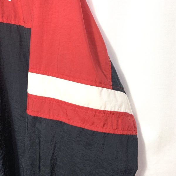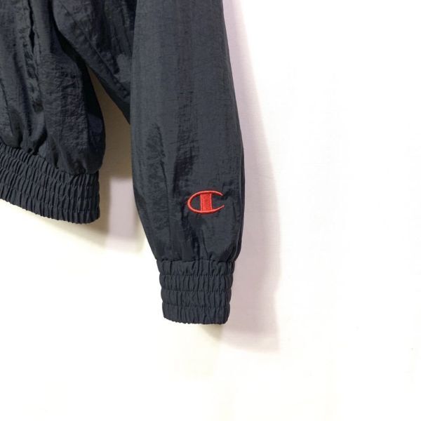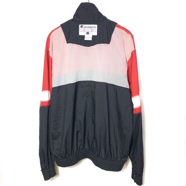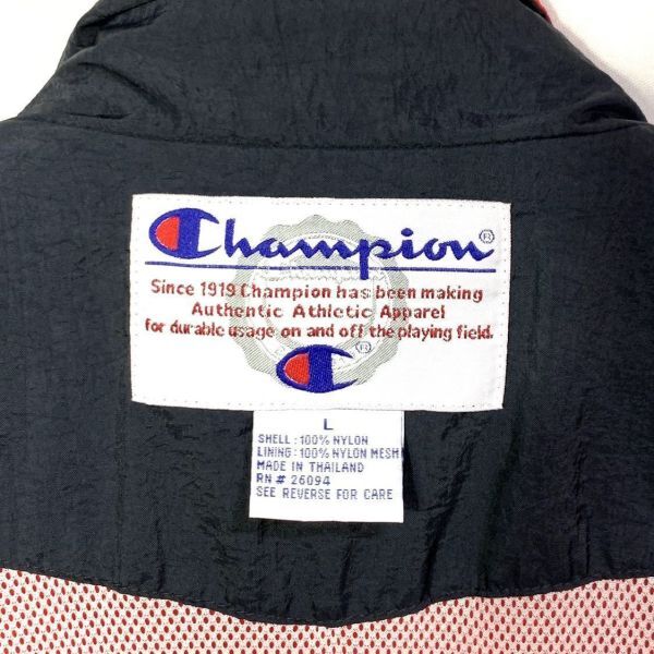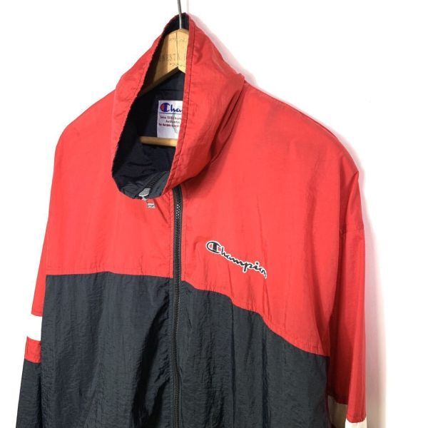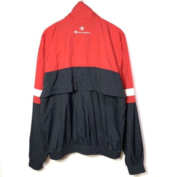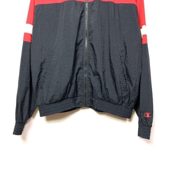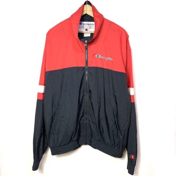 ■ チャンピオン バイカラー ナイロン ジャケット Lサイズ 黒×赤 champion 刺繍ロゴ スポーツ 古着 アメカジ 2トーン マルチカラー ■