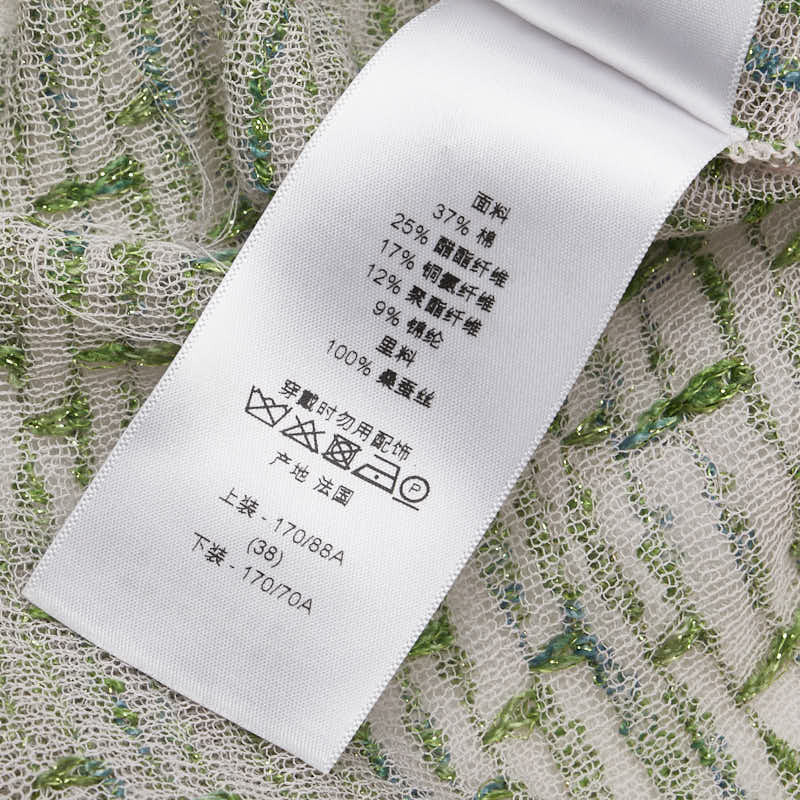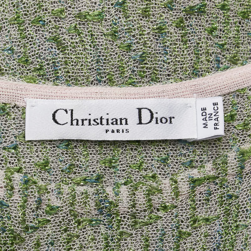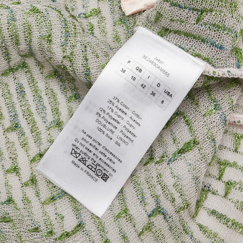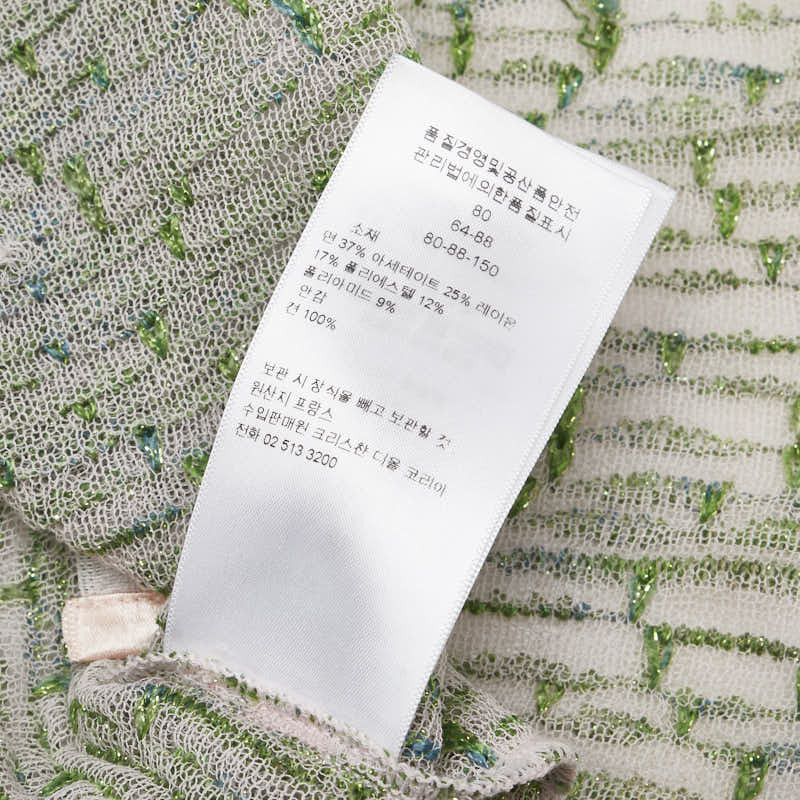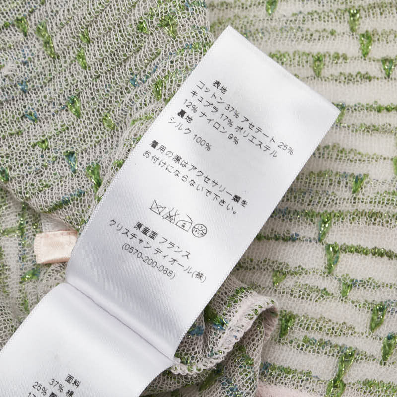 ディオール インナーキャミワンピ付き ラメ ノースリーブワンピース サイズ:38 グリーン ピンク コットン アセテート Dior 【中古】