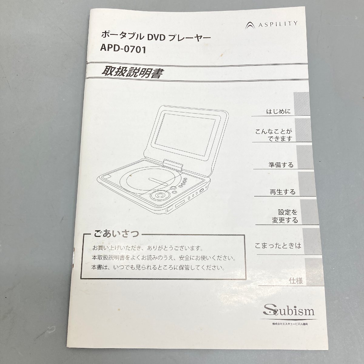 ◆◇[10] S-cubism APD-0701 7インチ液晶ポータブルDVDプレーヤー リモコン欠品 再生確認済 07/022710m◇◆