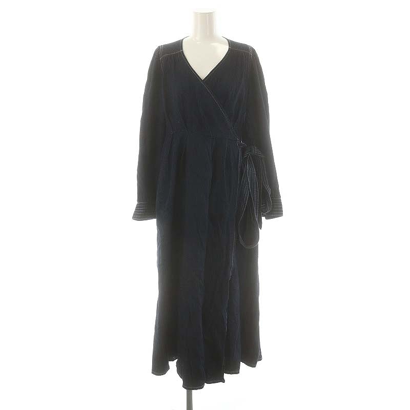 マウジー MOUSSY 23SS CACHECOEUR DENIM ドレス ワンピース カシュクール ロング 1 ネイビー /DO ■OS レディース