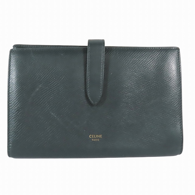 セリーヌ CELINE ラージストラップウォレット 2つ折り財布 レザー ダークグリーン/6 レディース