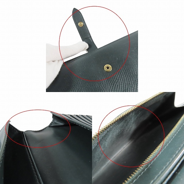 【状態】この商品には下記のようなダメージがあります。その他に目立ったダメージはなくまだまだご使用いただける商品です。 ・レザー全体的に傷、擦れ ・角擦れ、ひび割れ ・スナップボタンの欠損 ・内側部分に擦れ ・小銭入れに汚れ、擦れ ※あくまでも中古品ですので掲載写真や記載内容をご確認いただき、ご理解の上ご購入ください。