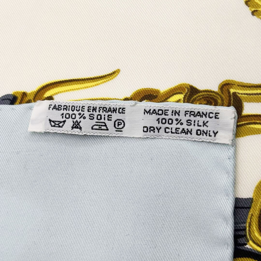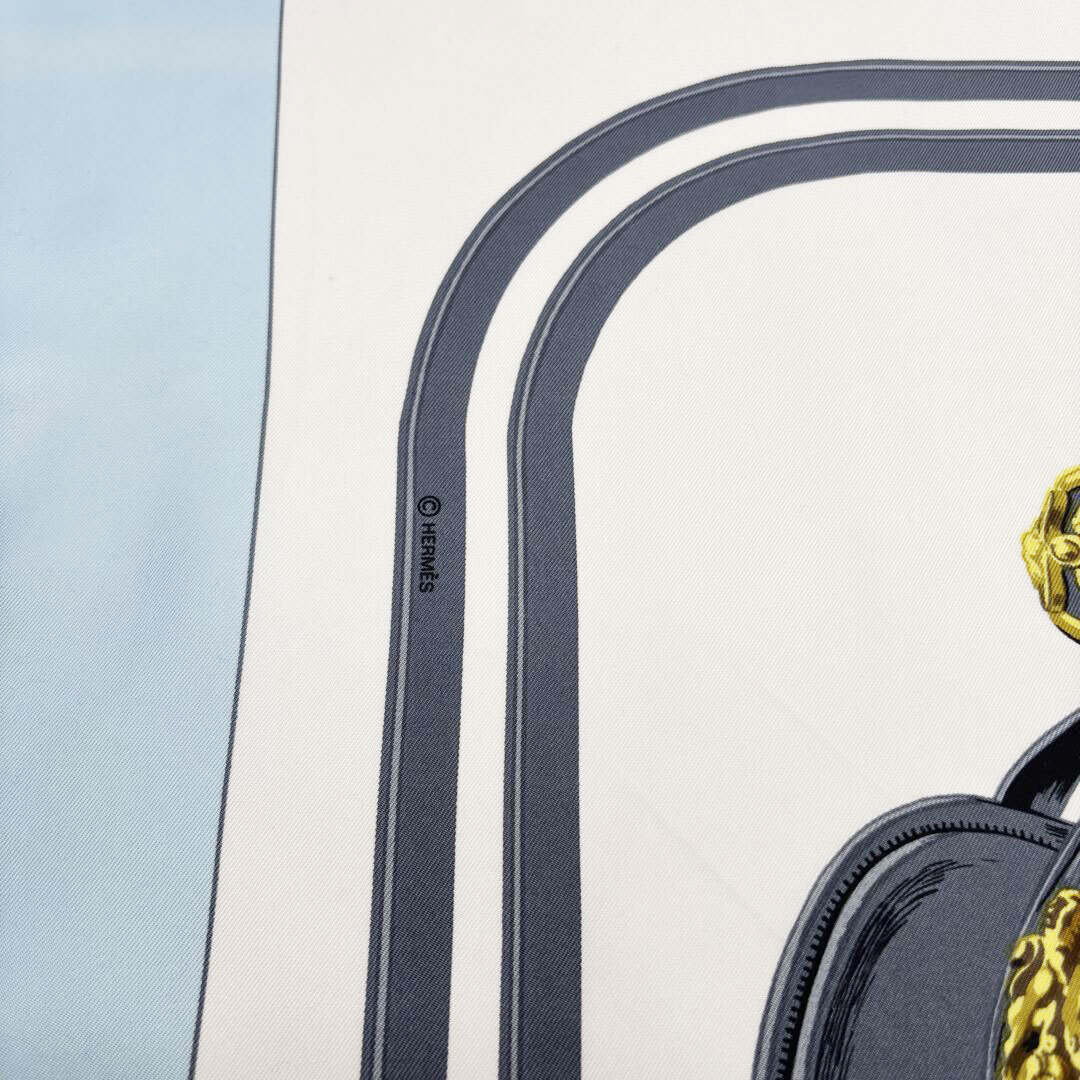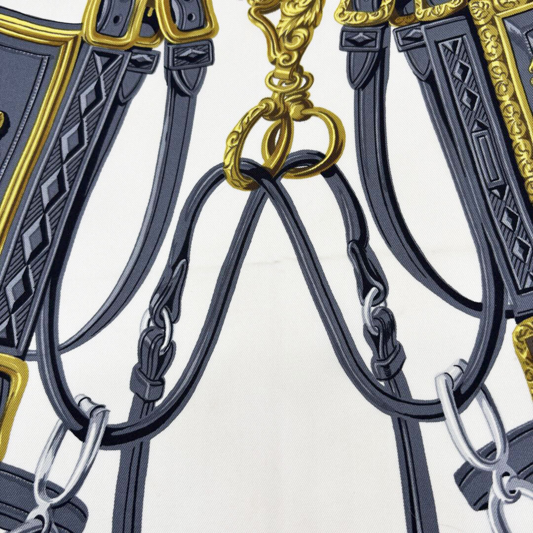 | HERMES エルメス スカーフ カレ90 『BRIDES de GALA(ブリッド・ドゥ・ガラ)』 シルク ホワイト/ライトブルー系 |