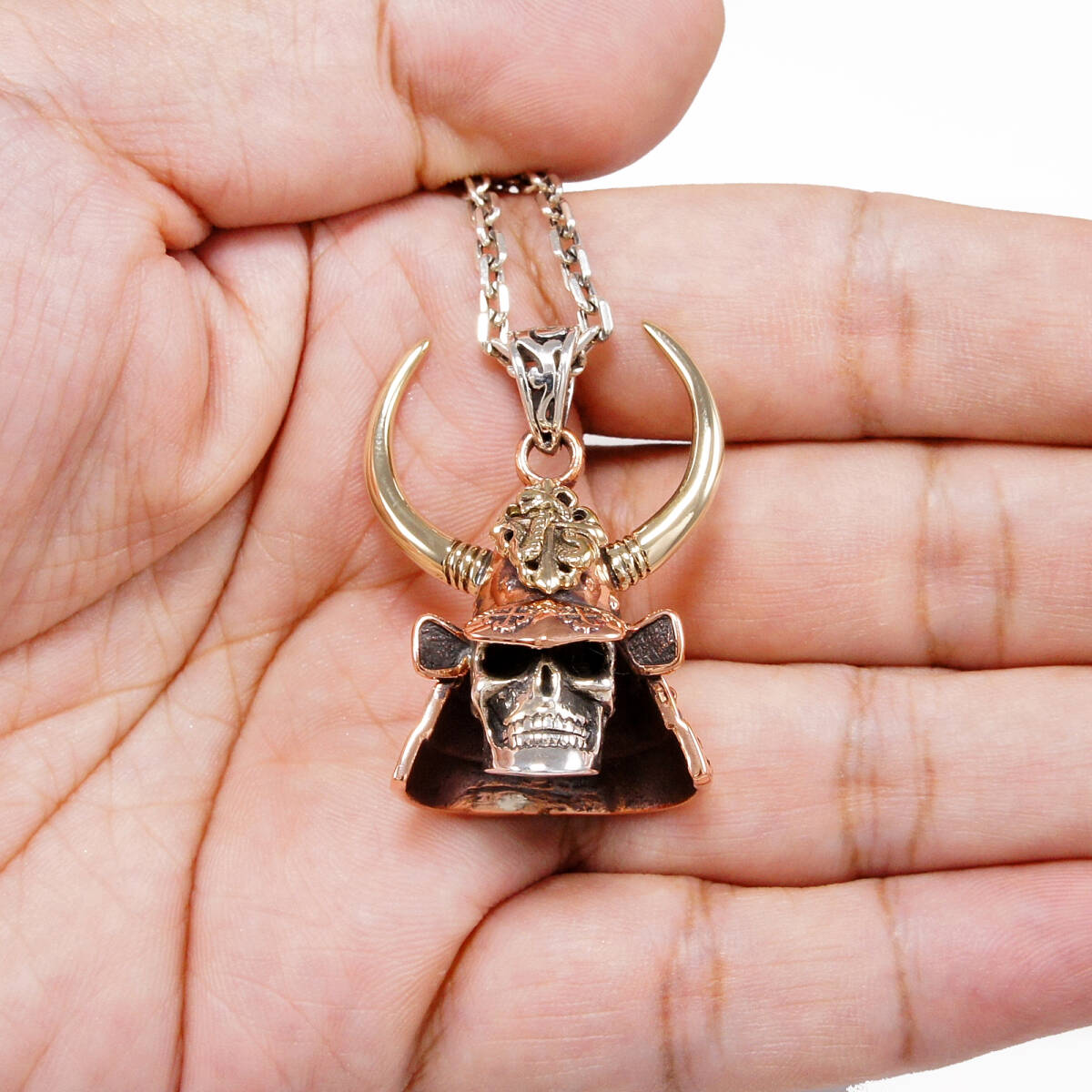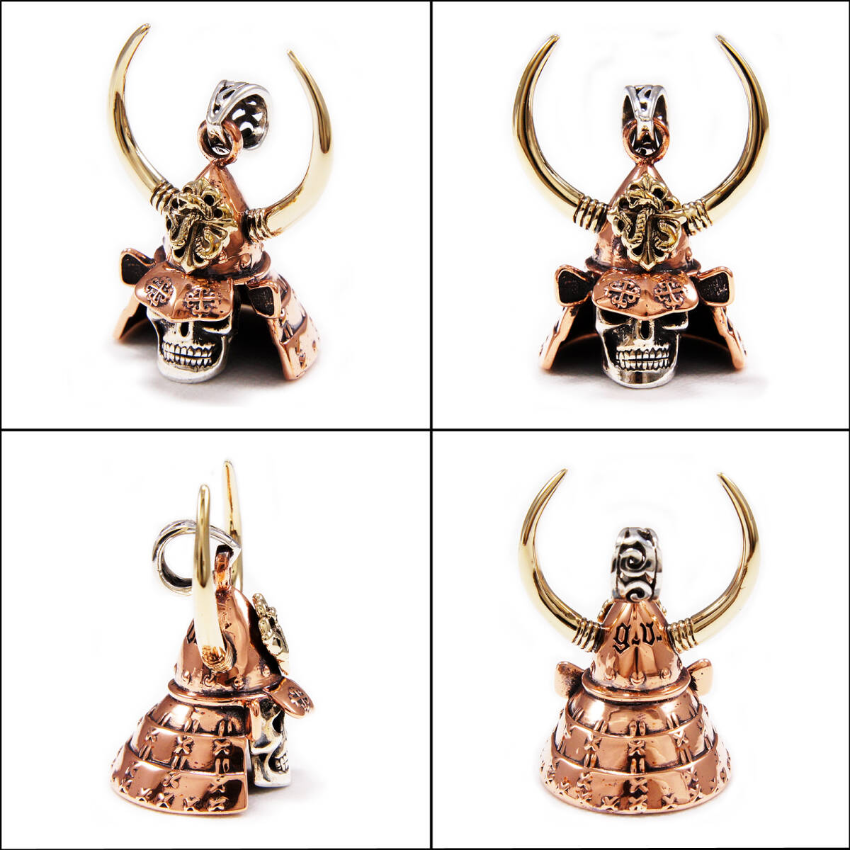 スカル 兜 武士 青銅 真鍮 925シルバー ペンダント GB-114
