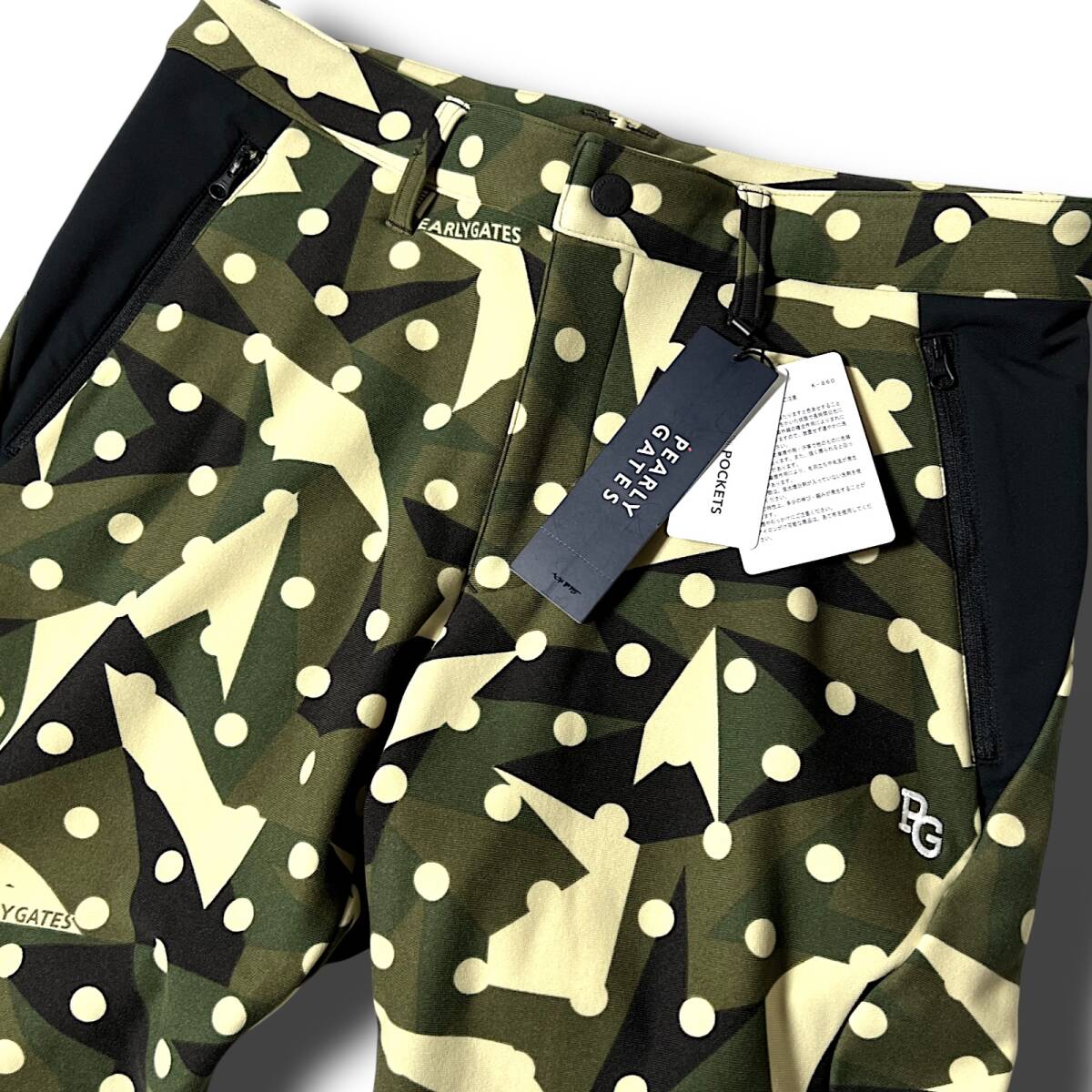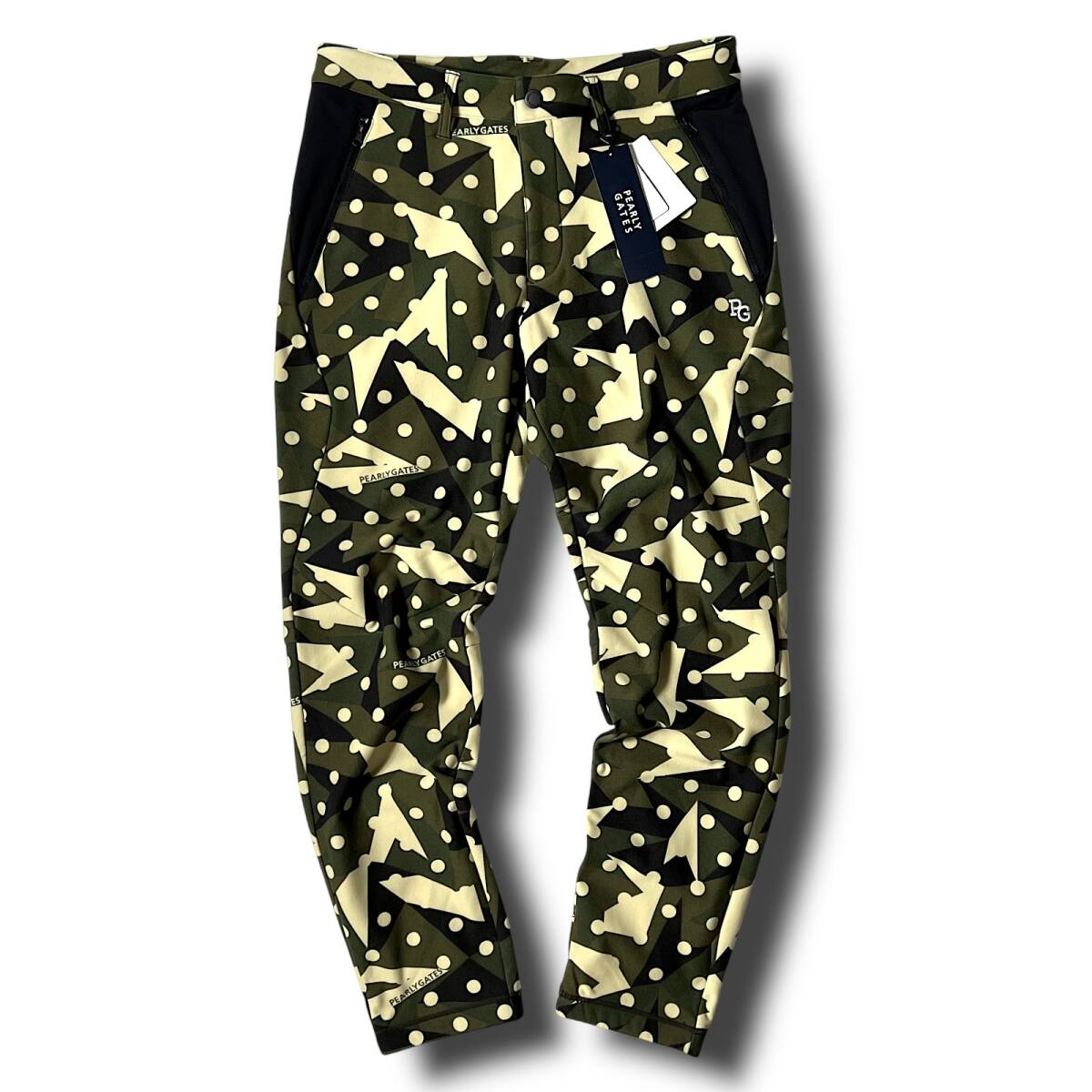 タイトル 新品 PEARLY GATES パーリーゲイツ 定価3.3万 防風 防寒 保温 裏起毛 迷彩 カモフラ カモドット柄 ストレッチ ラグウォーム ジョガーパンツ ゴルフウェア メンズ GOLF スポーツ レジャー 普段使い タウンユース カジュアル 春秋冬 181 オリーブ×カーキ×ブラック系