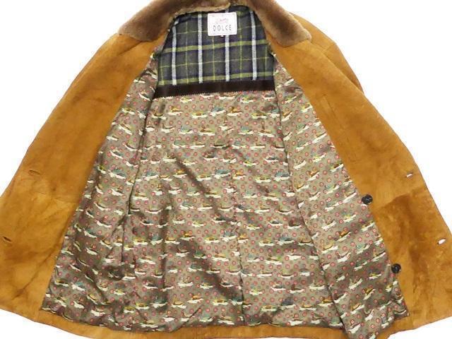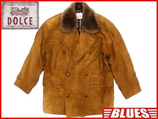 即決★DOLCE★メンズM位 レザー襟ムートンコート ドルチェ 48 茶 ブラウン 本革 ジャケット 本皮 ビジネス ラム 革ジャン