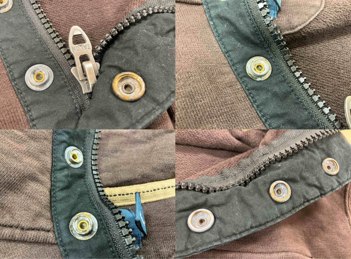 | 汚れ有り、擦れ有り、変色有り、穴あり、襟周り汚れ有り、袖周りよごれ、金属部分腐食有り、 |
