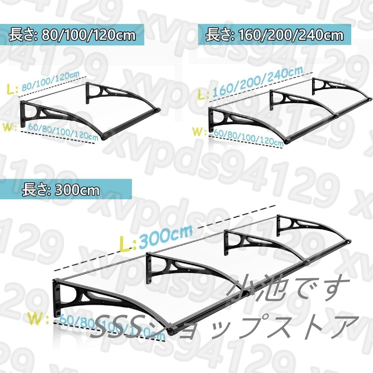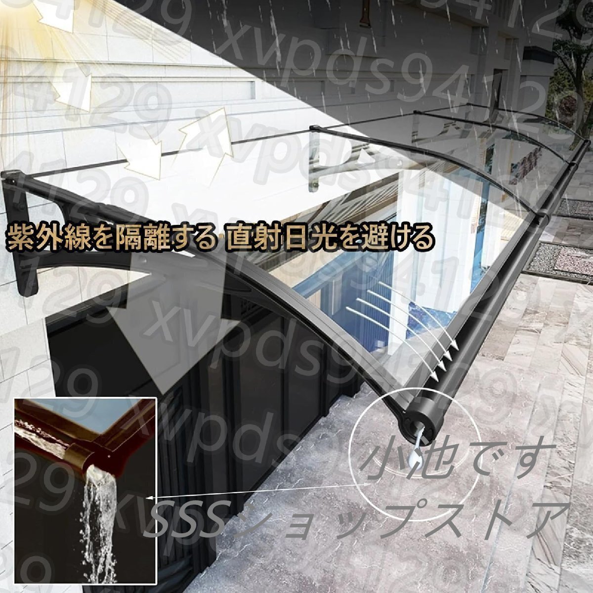 テラス屋根 庇 透明な ひさし 屋根庇 ひさし 雨よけ ポリカーボネートキャノピー 日よけ 防水能力 屋外用 雨どい庇 窓 玄関用 80*160cm