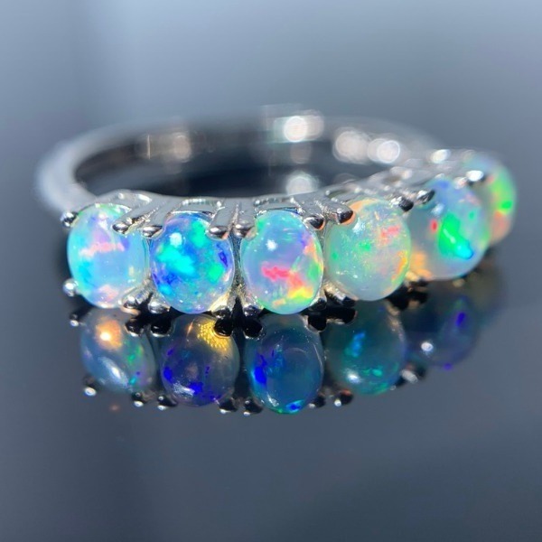 女性用天然オパールリング、3×4mm、オーストラリア産、925 スターリングシルバー、結婚婚約パーティー、ファインジュエリー